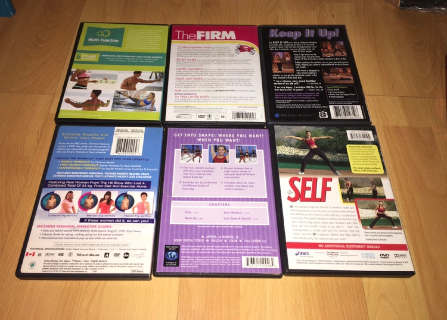 Collection of six workout DVDs. Various fitness styles included. Great for home workouts. Titles include: Multi-function Workout DVDs, The Firm CardioWeight System, Keep It Up!, Extreme Makeover Fitness, Body & Soul Fitness Fat Burner, and Self Dance Your Way Slim. Selling all 6 DVDs for $10. Although our location is near the Bridlewood Mall, we are also able to meet in other areas in Scarborough, Ajax, Whitby, and Oshawa when my husband is scheduled to be in those areas.