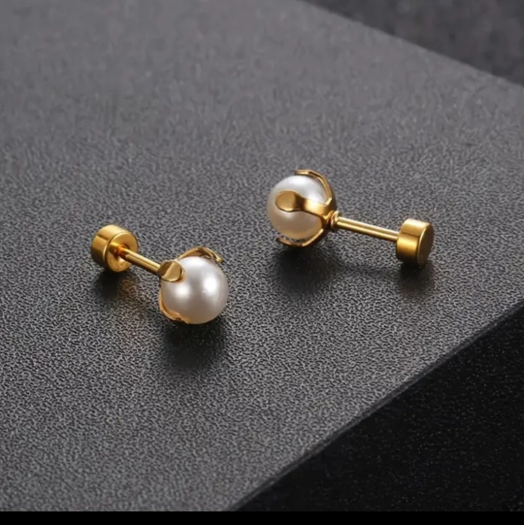 Elegant pearl stud earrings. Gold-toned metal. Secure closure. Smoke free and pet free home Kindly note all sales are final and no return or refund Please check my other listings aswell😊