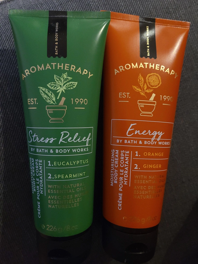 Two tubes of Bath & Body Works Aromatherapy body cream for $5 total. 1) Stress Relief with eucalyptus and spearmint 2) Energy with orange and ginger Moisturizing body cream with natural essential oils. The stress relief one was never opened / used. I tried the Energy one once. Only available for pick-up in North York.