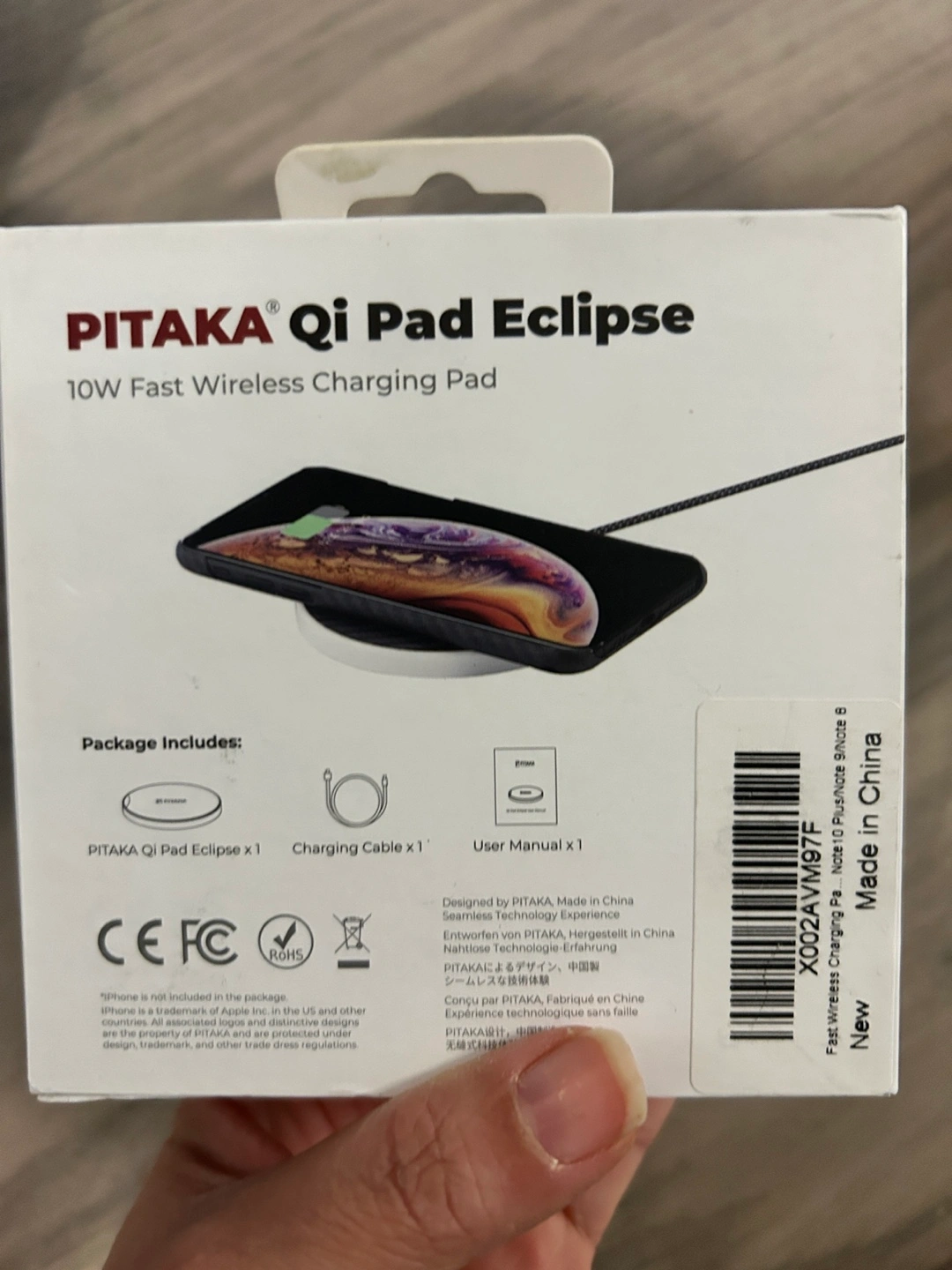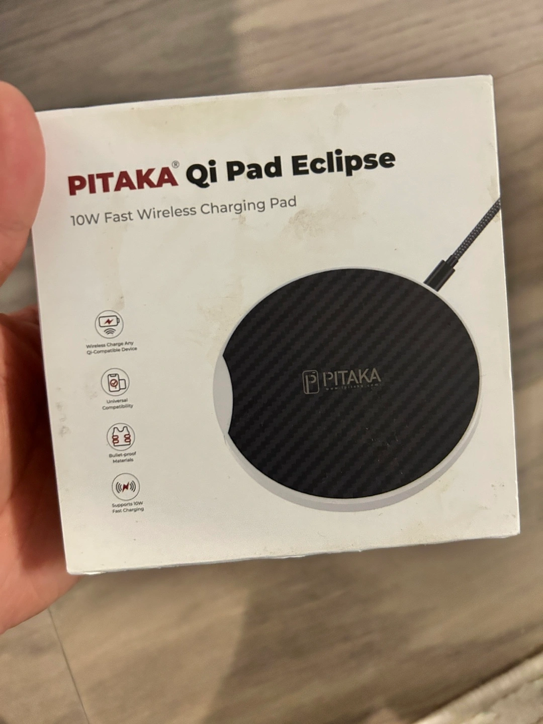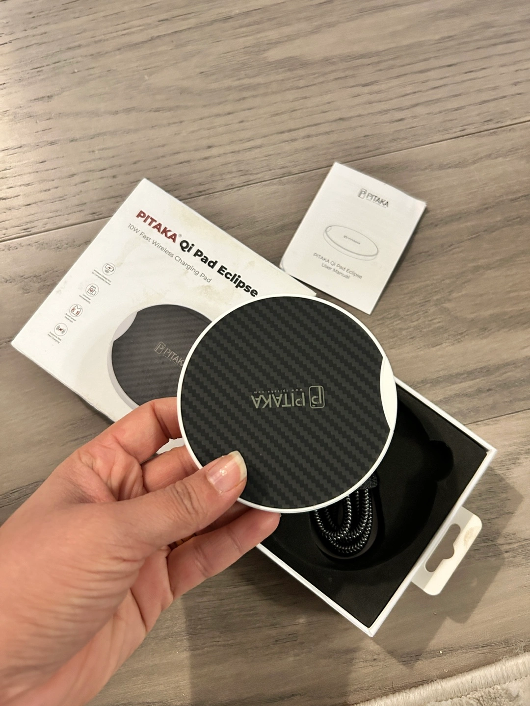 New Pitaka Qi Pad Eclipse. 10W fast wireless charging pad. Includes charging cable and user manual. Sleek design, carbon fibre finish. New in box!