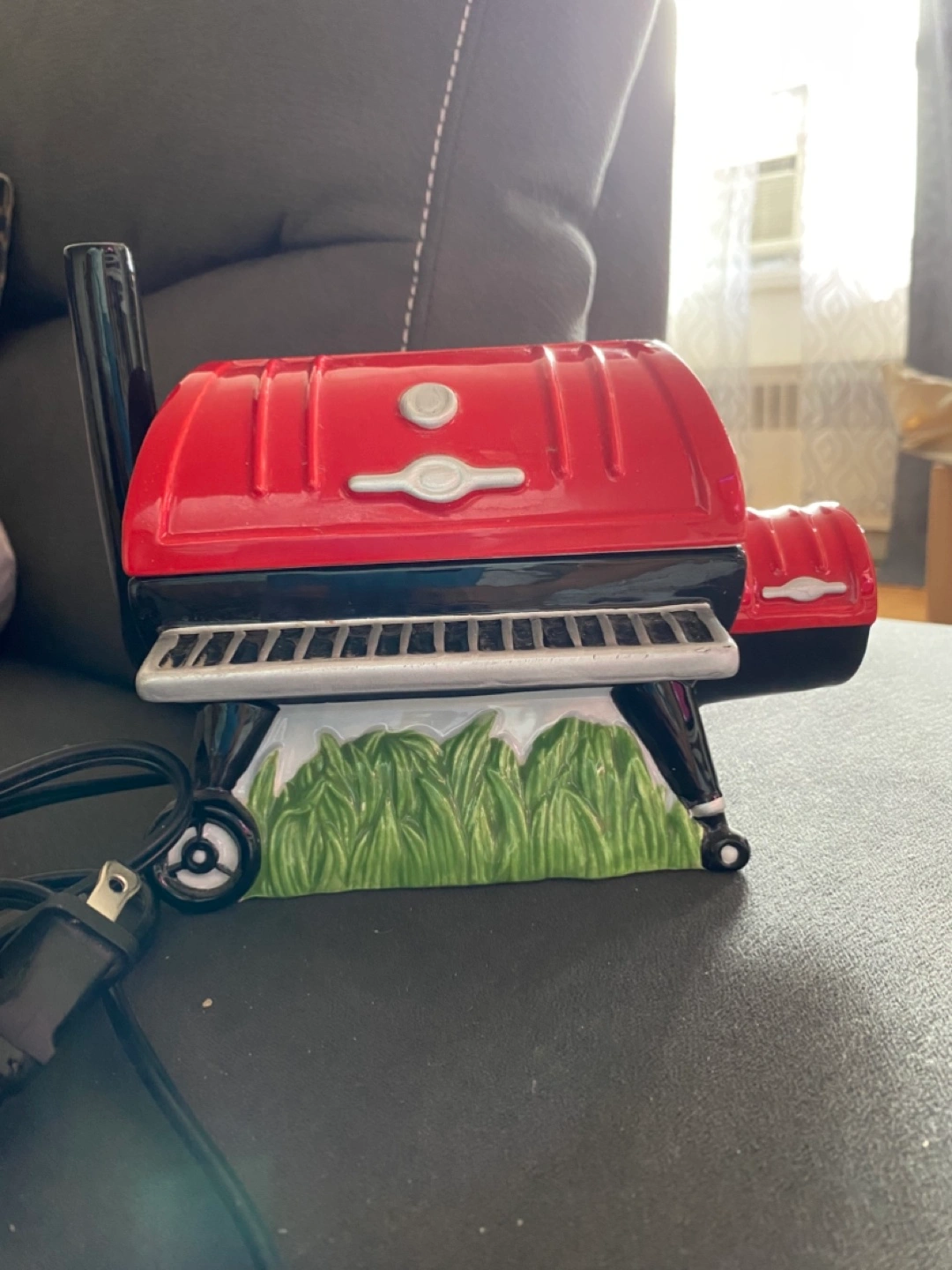 Scentsy warmer shaped like a BBQ. Red and black ceramic. Electric warmer. Includes cord.