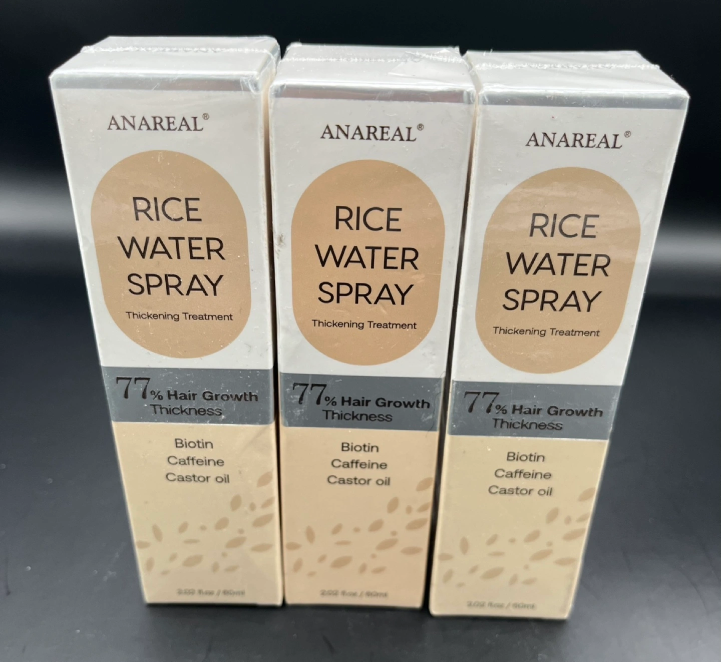ANAREAL Rice Water Spray. Thickening treatment for hair growth. Contains biotin, caffeine, and castor oil. 60ml each. $10 each Pickup from Brampton or Lawrence/Weston area.