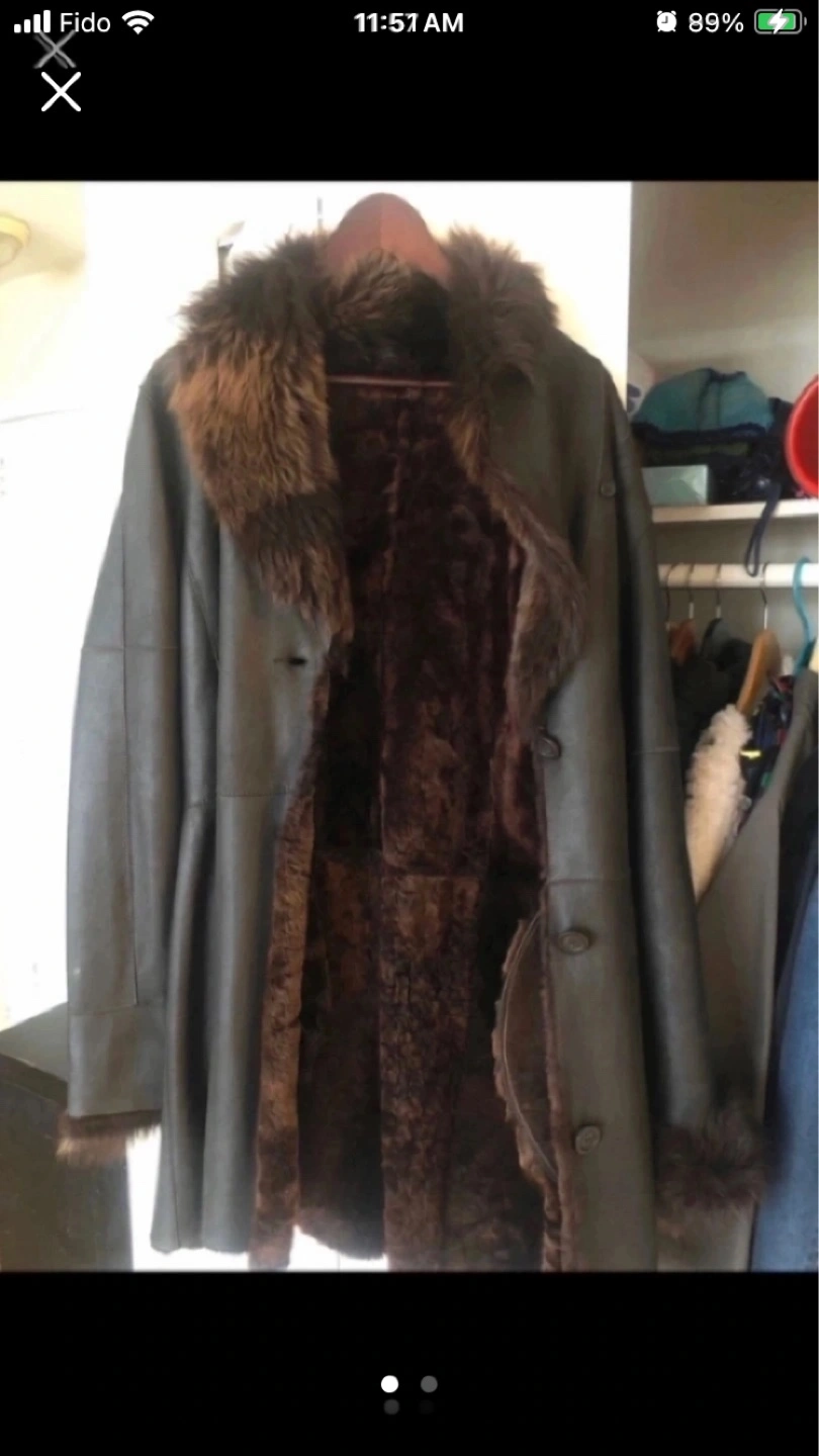 brown leather shearling coat with a fur collar. The coat has a button closure and two pockets. The fur lining is soft and warm. This was gifted to me and never worn. Not really my style. Authentic fur & leather! Danier leather size small πΌ