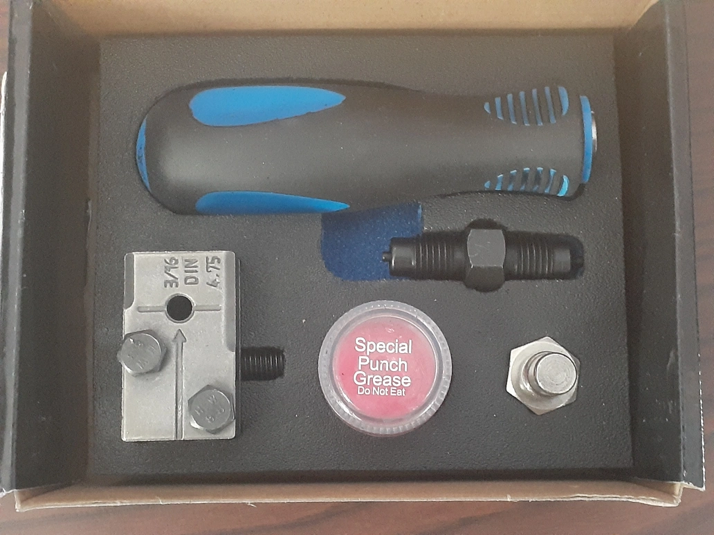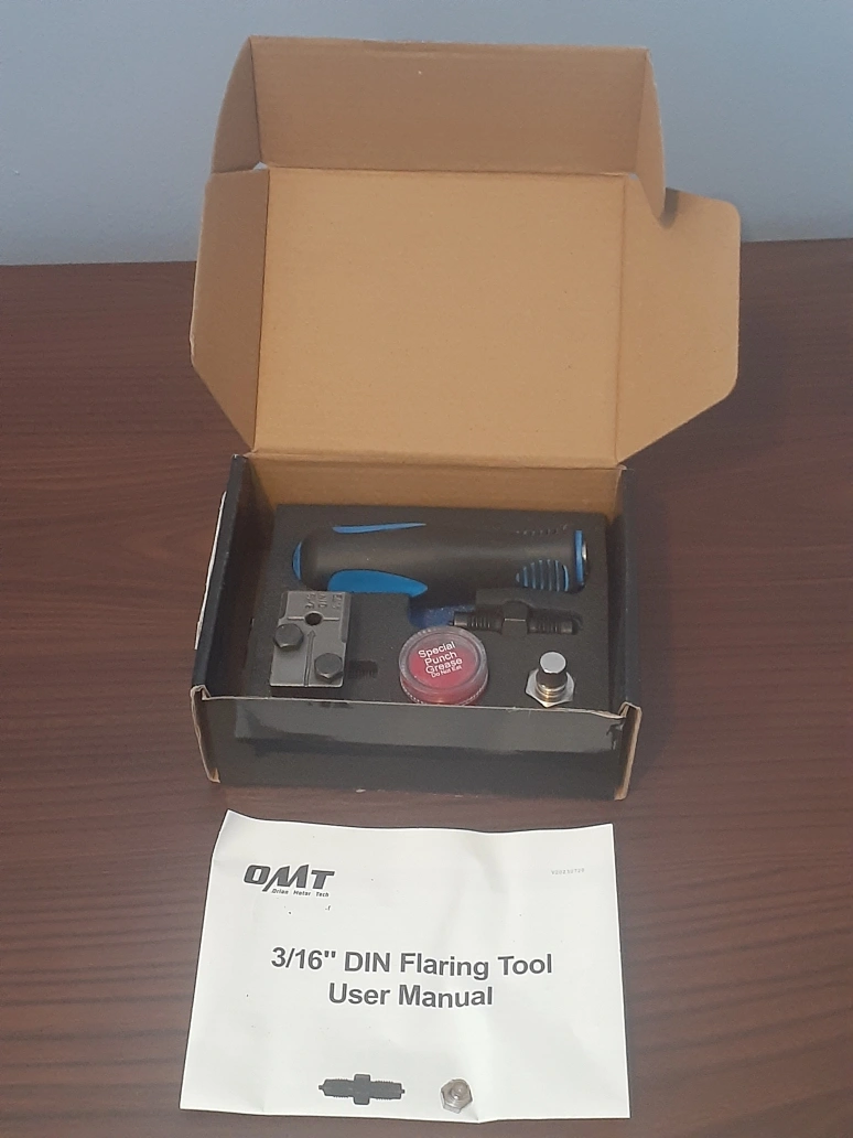 New in box. 3/16-inch DIN flaring tool. Includes user manual, special punch grease, and all necessary components. Easy assembly, precise flares.