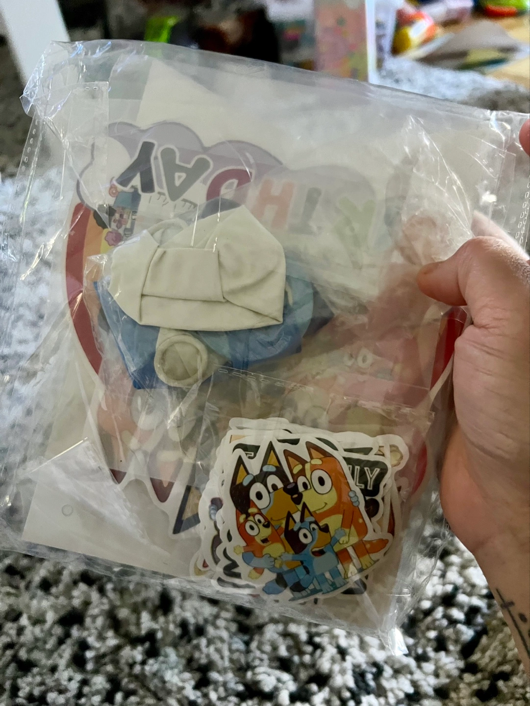 Unused Bluey birthday party supplies. Includes banner, stickers, cake topper and some balloon. Perfect for a Bluey-themed celebration. Pick up only Located near Mt. Pleasant and Eglinton Ave East
