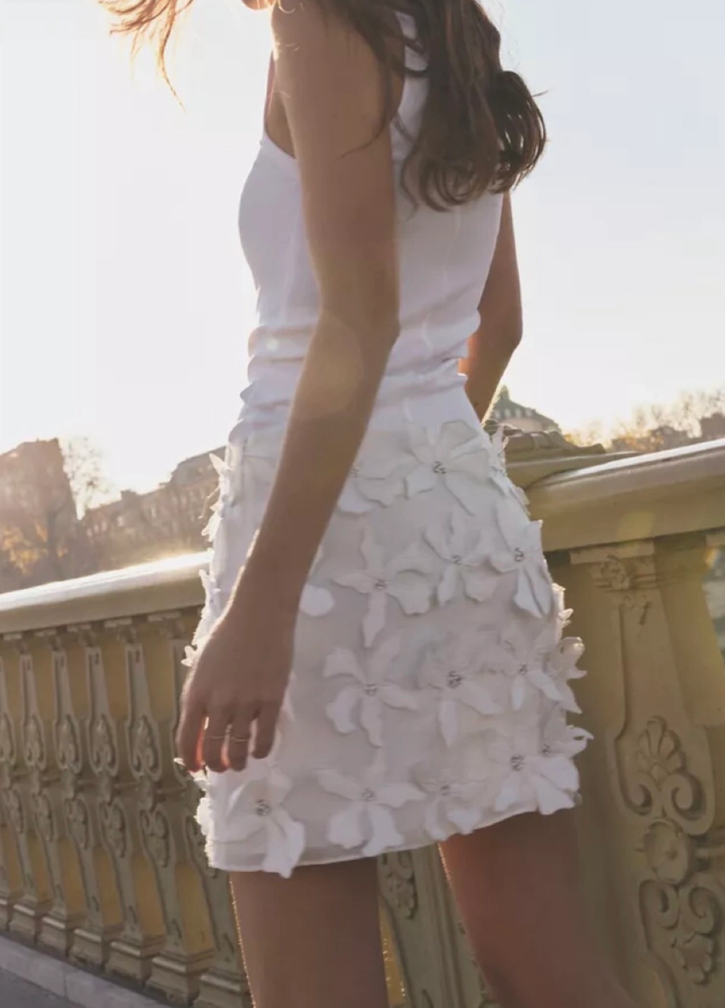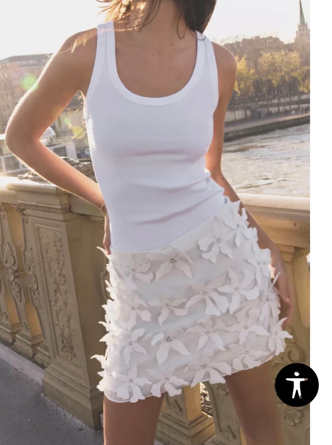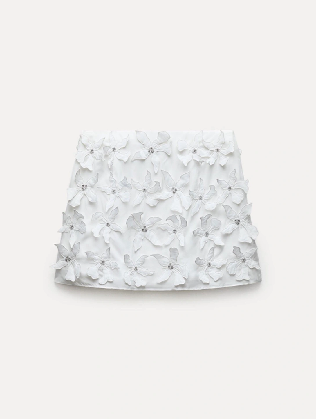 Adorable floral mini skirt. Features beautiful white embroidered flowers Fits like xsmall ! Hand wash only. Do not tumble dry or dry clean. New