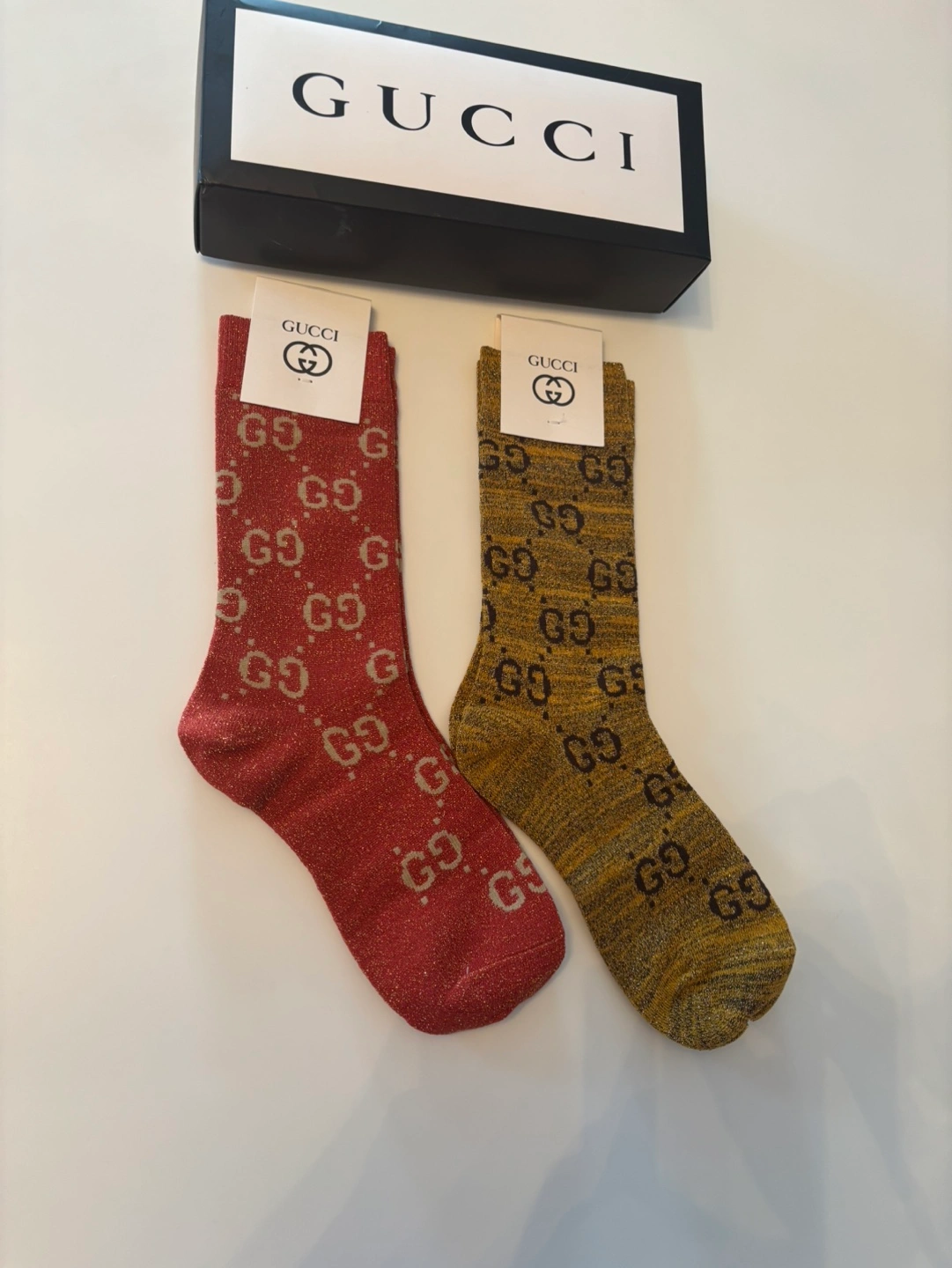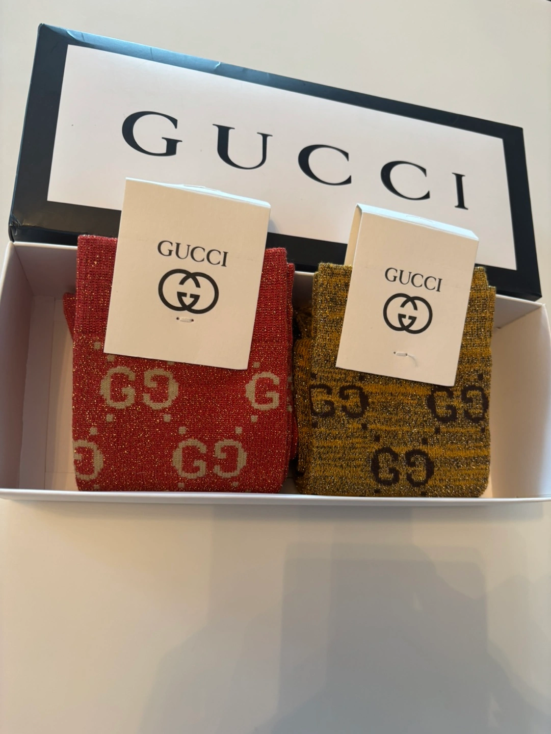 Pair of socks. Red and gold. GG pattern. New with tags. In box.