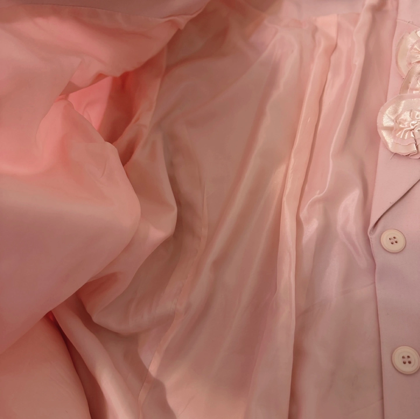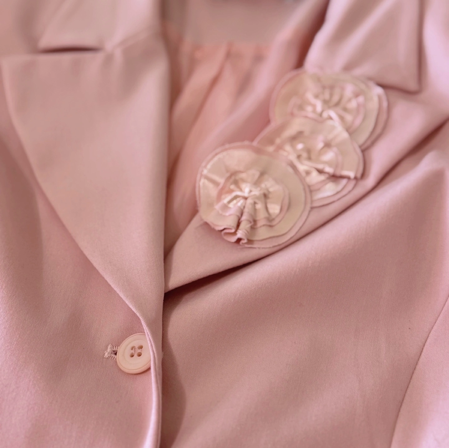 A beautifully tailored vintage blazer with an elegant rose applique detail on the lapel. This feminine piece features a structured silhouette with a soft lining, classic button-up front, and long sleeves. Perfect for special occasions, church events, or adding a romantic touch to your daily outfit. ✔ Material: • Shell: 63% Polyester, 33% Rayon, 4% Spandex • Lining: 100% Polyester 📌 Note: Brand label has been cut off ✔ Size: • Shoulder: 44 cm (17.3”) • Chest: 54 cm (21.3”) • Total Length: 66 cm (26”) • Recommended for M–L ✔ Features: • Delicate rose applique detail for a romantic finish • Classic notched collar and full lining • Smooth button-up closure with matching buttons • Gently tailored fit for a flattering silhouette 📌 Condition: • Overall in excellent vintage condition. Due to the nature of vintage items, there may be minor signs of wear, such as slight stains or small imperfections.