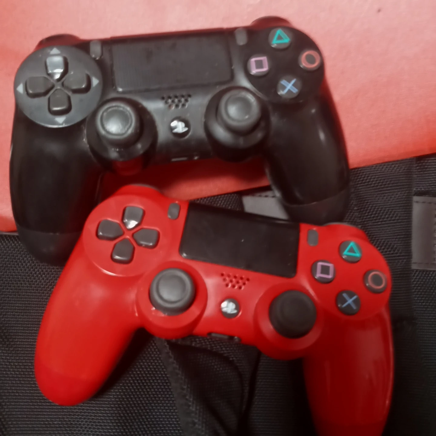 Two PS4 controllers. One black, one red. Used condition. Great for gaming. 30 each or 55 for both.