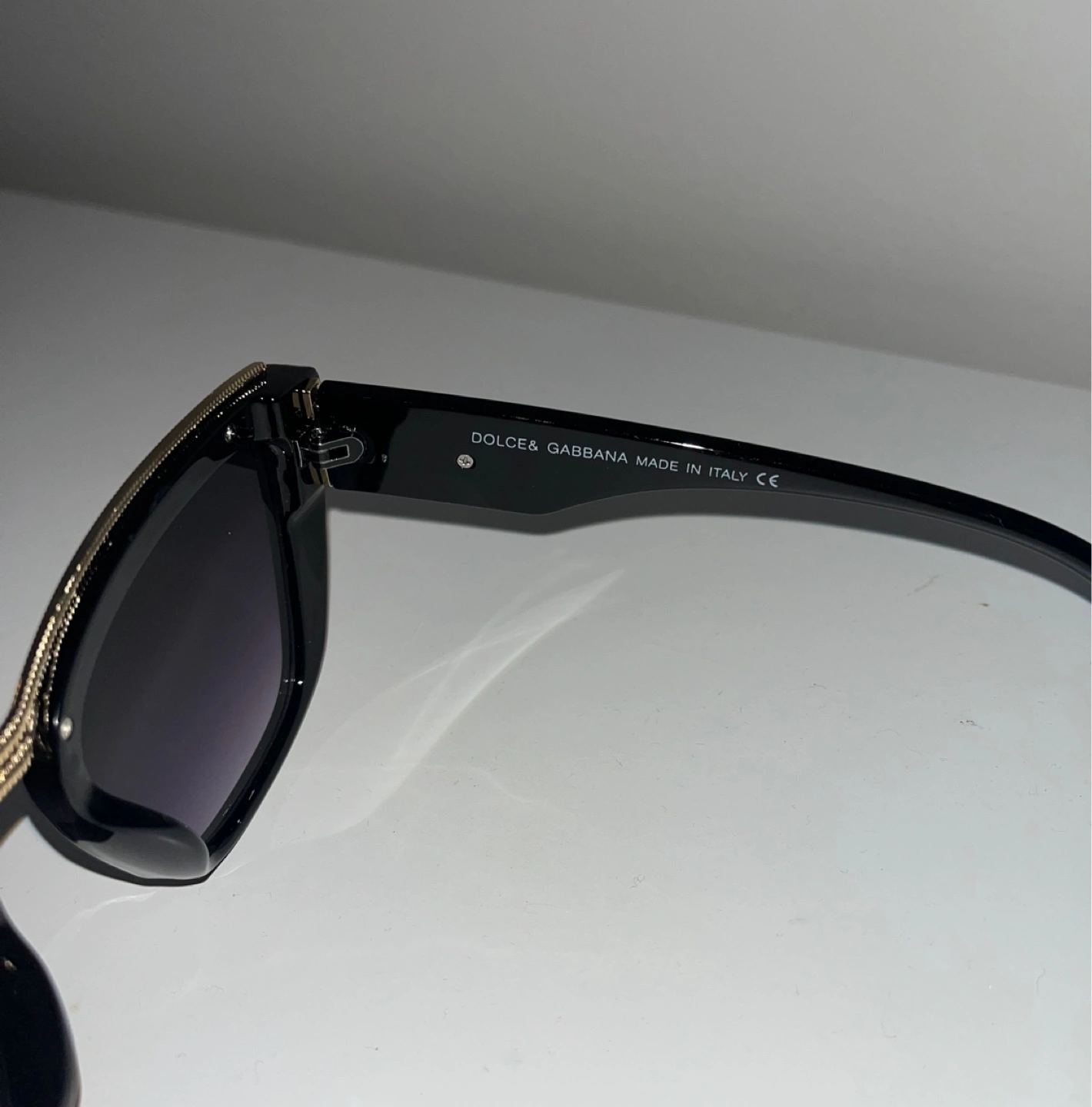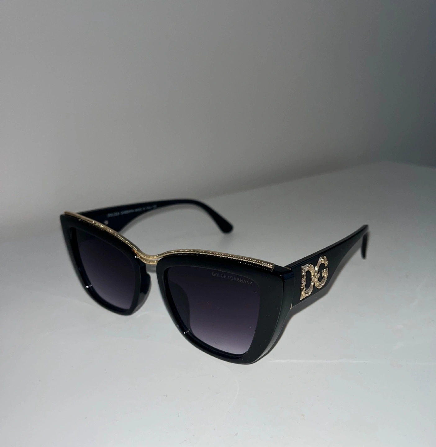 Black cat-eye sunglasses. Gold accents. Made in Italy. Excellent condition.