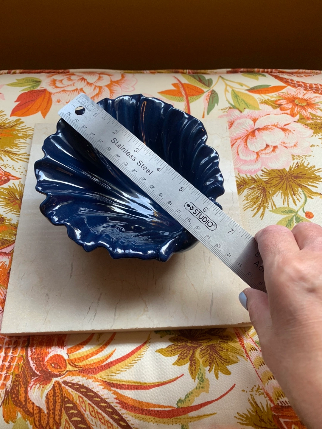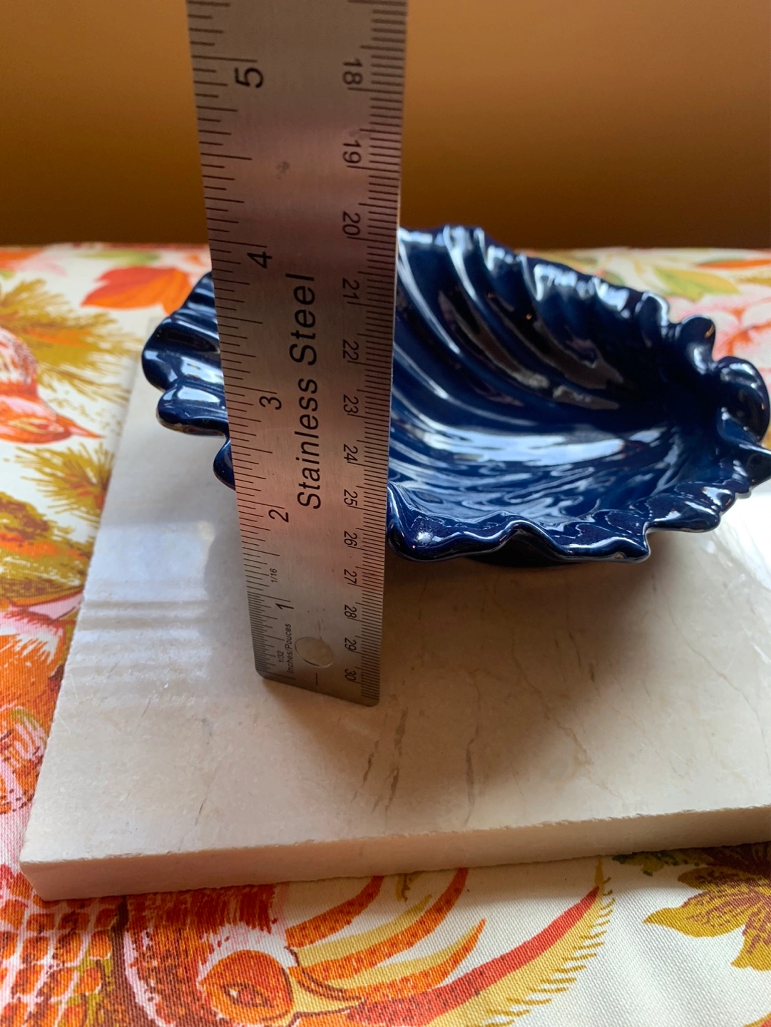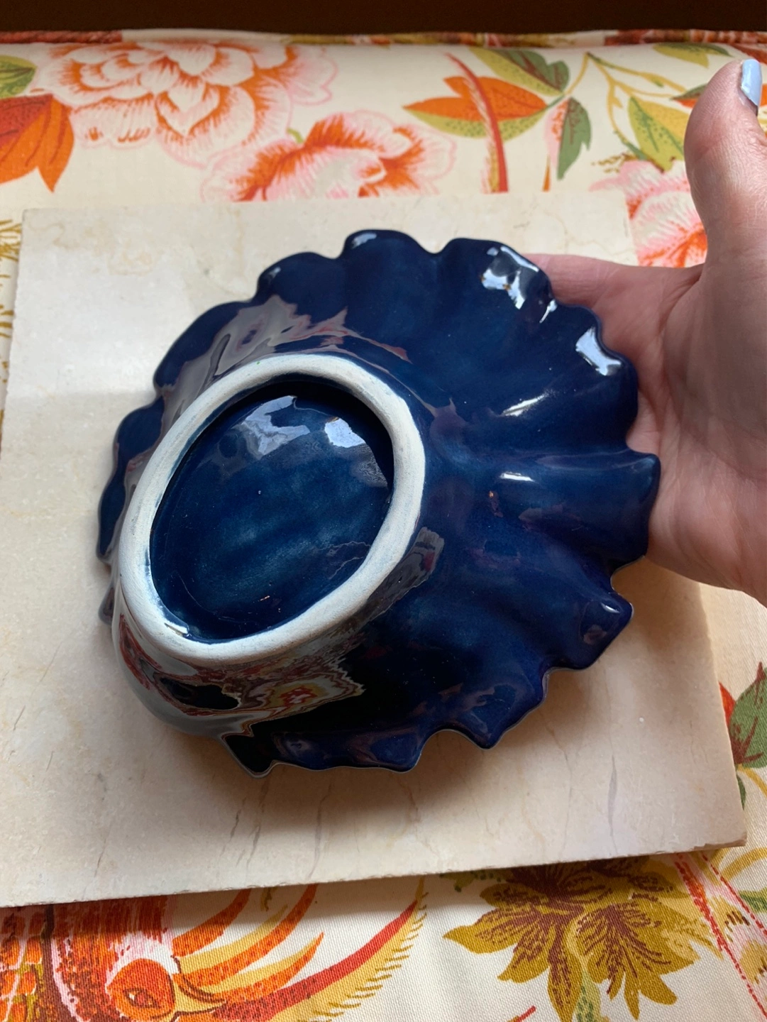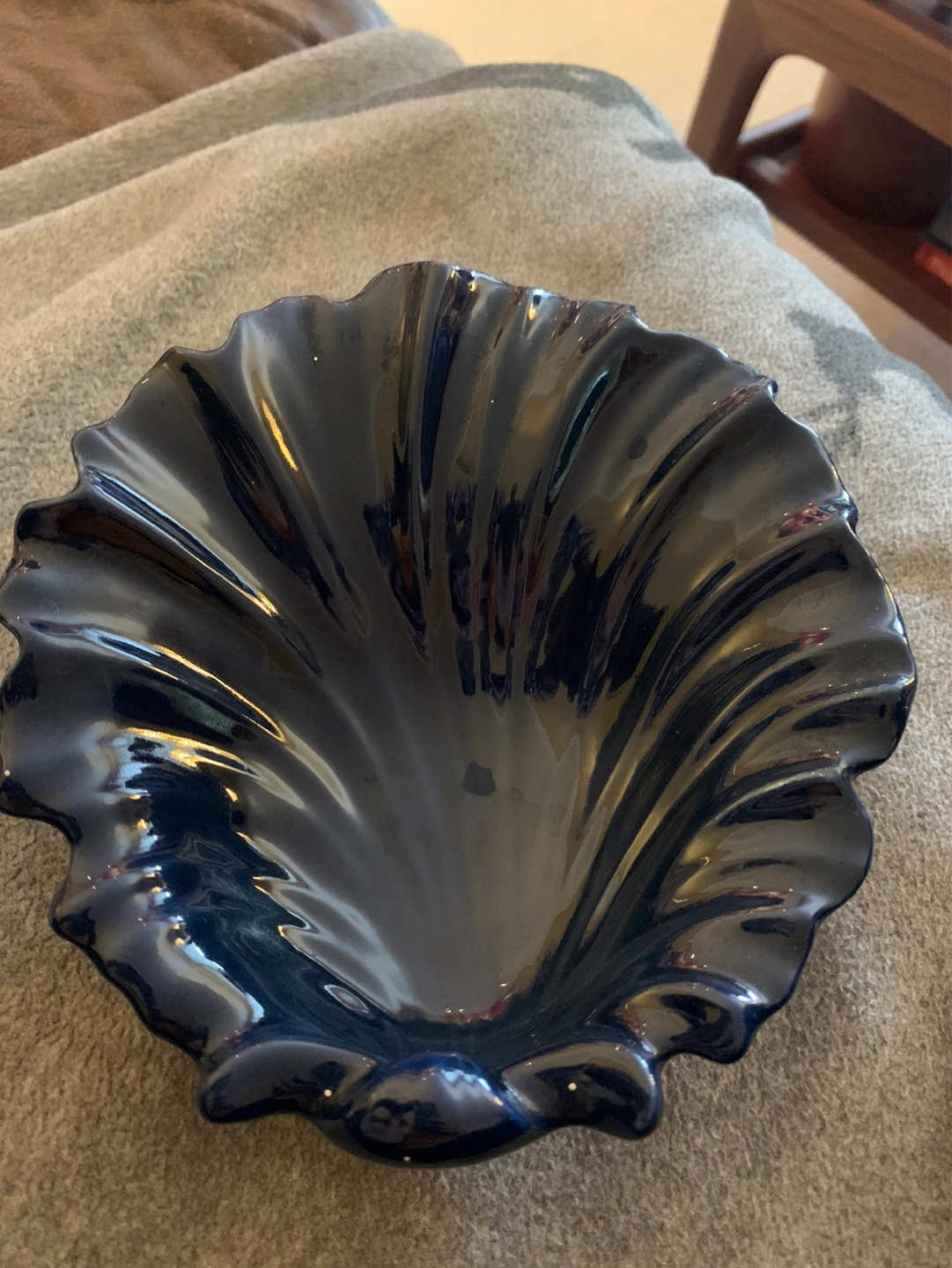 Gorgeous cobalt blue sea shell pottery dish. 💙 A small decorative dish/bowl that could become a trinket dish, soap dish in a kitchen/bathroom or just a beautiful piece of decor to display! The deep cobalt blue is perfection …there is one outer rim piece that looks like it got missed in the glazing process and maybe one other piece that is a tiny chip but it does not take away from the piece. As seen in the pics. Cash only please.