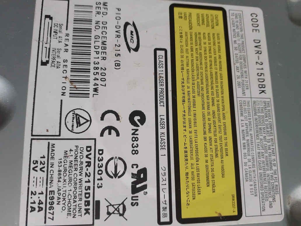 Used internal DVD-RW drive. Model number DVR-215DBK. Sold as-is.