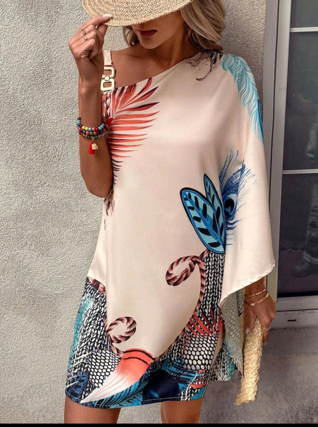 Brand new, never-worn elegant mini dress. One-shoulder design. Features a beautiful peacock feather print. Lightweight and flowy fabric. Perfect for summer. Originally bought from Shein for $20+tax . Own this beautiful summer dress for a much lesser price! Check out my other listings and bundle to save. ππ»πΈ Cash and pickup only on Brimley and Eglinton Rd E. in Scarborough.