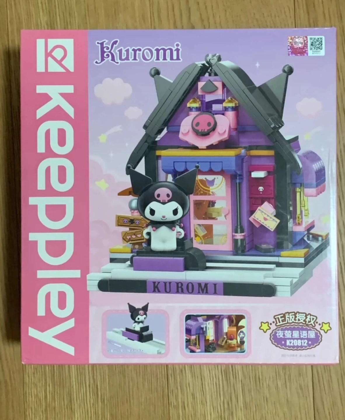 New in box. KeepPlay brand. Kuromi themed building block set. Features a cute house and Kuromi character.