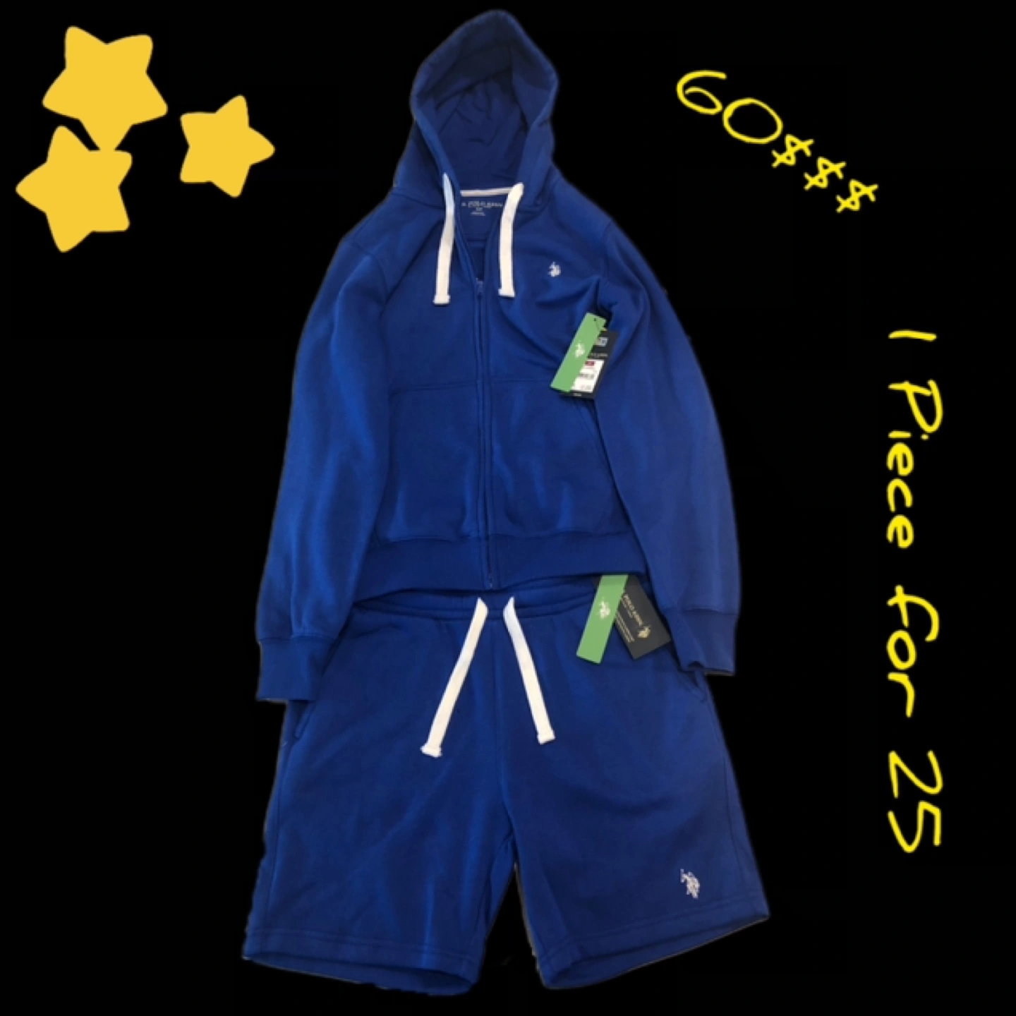 Brand new, men's athletic wear. Royal blue zip-up hoodie and matching shorts. Perfect for working out or lounging.