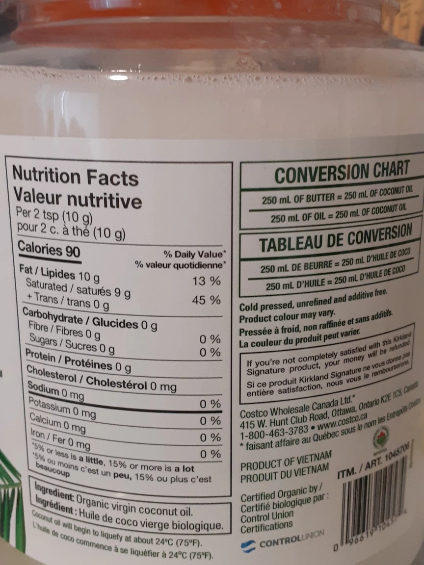 NIB Costco Kirkland Signature organic virgin coconut oil (2.38kg/2.48l) for sale for $20! 7786083054 call or text! Science World/Main St. downtown area pick-up is ideal! Popular brand, bulk size!