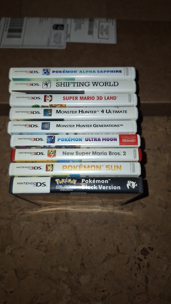 Selling a collection of used Nintendo 3DS and DS games all in good condition * Pokemon Alpha Sapphire * Shifting World * Super Mario 3D Land * Monster Hunter 4 Ultimate * Monster Hunter Generations * Pokemon Ultra Moon * New Super Mario Bros. 2 * Pokemon Sun * Pokemon Black Message with offer if interested in any game individually.
