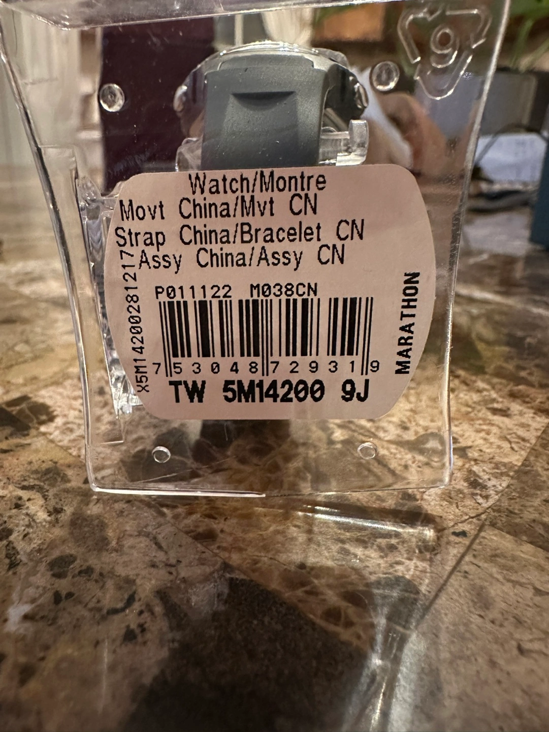 Brand new men's digital watch. Features 24-hour stopwatch, daily alarm, chronometer, and 50M water resistance. Black resin band and digital display. Comes in original box.