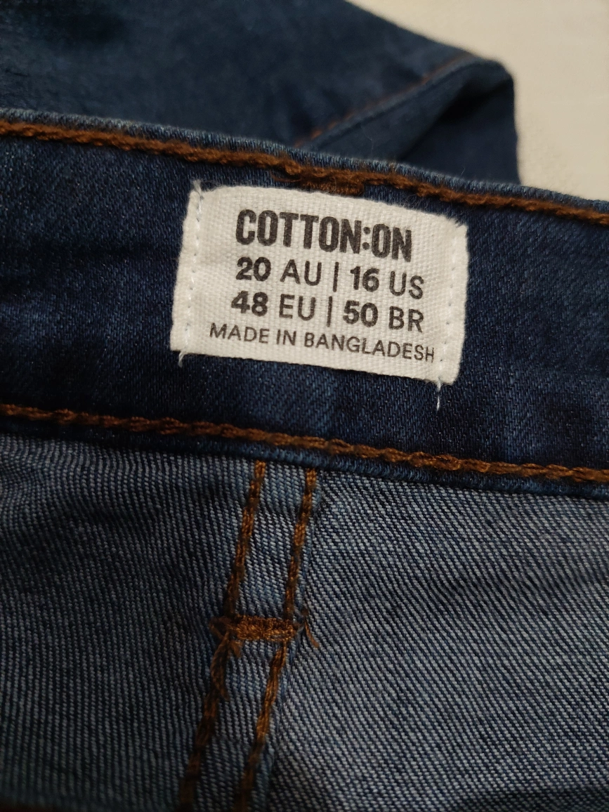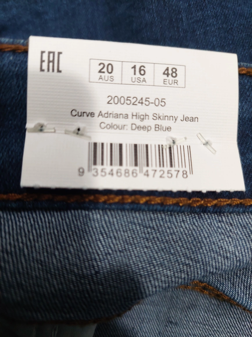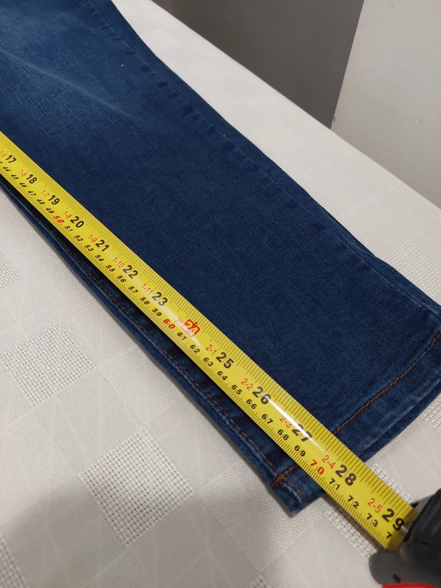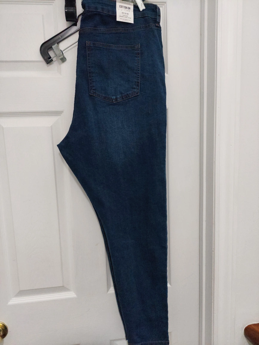 Deep blue coloured jeans. High-waisted skinny fit. Size 16. Inseam measured 28 inches. Please browse at my other pieces for a discount on multiple orders. Thank you for your time.