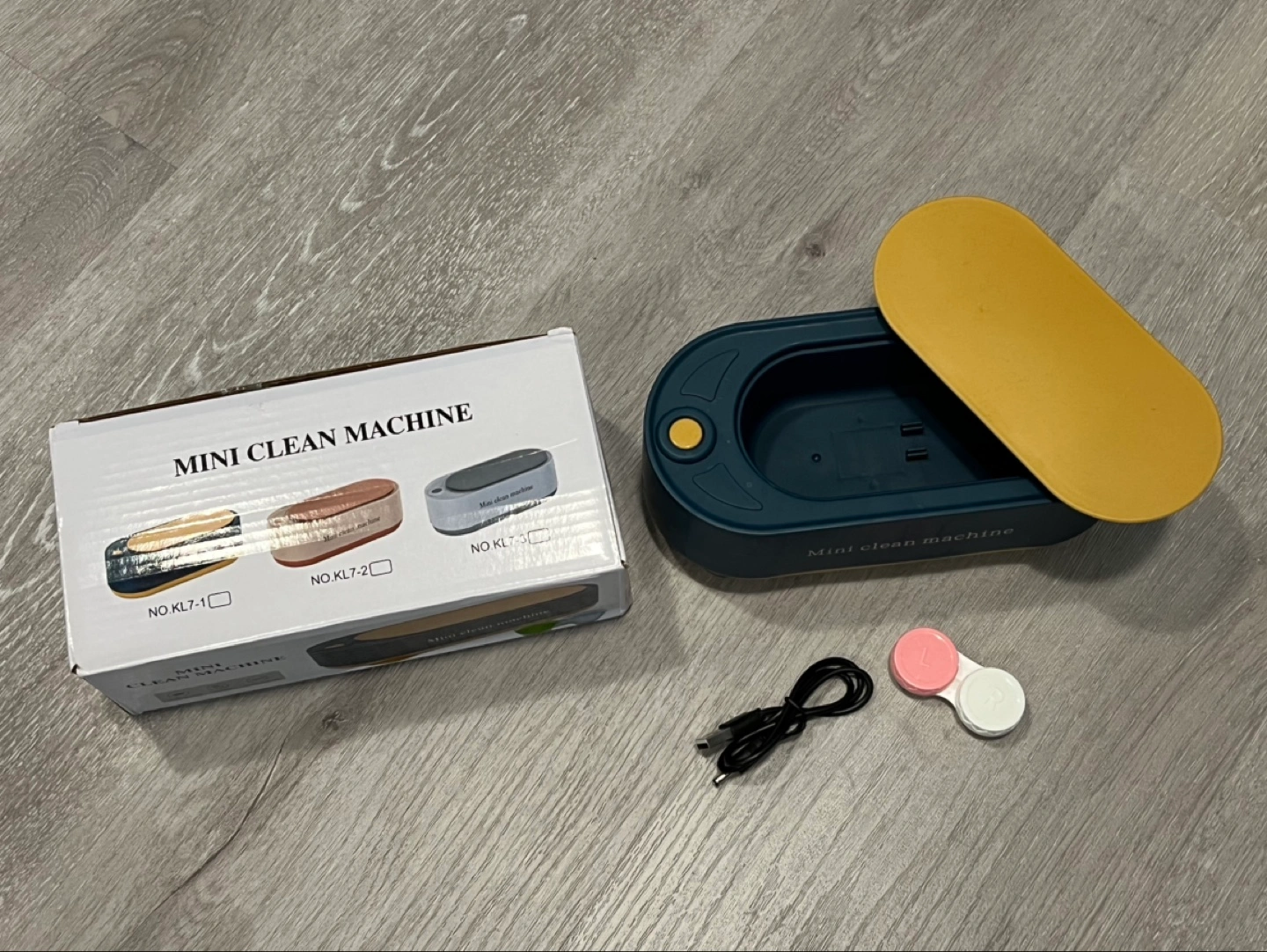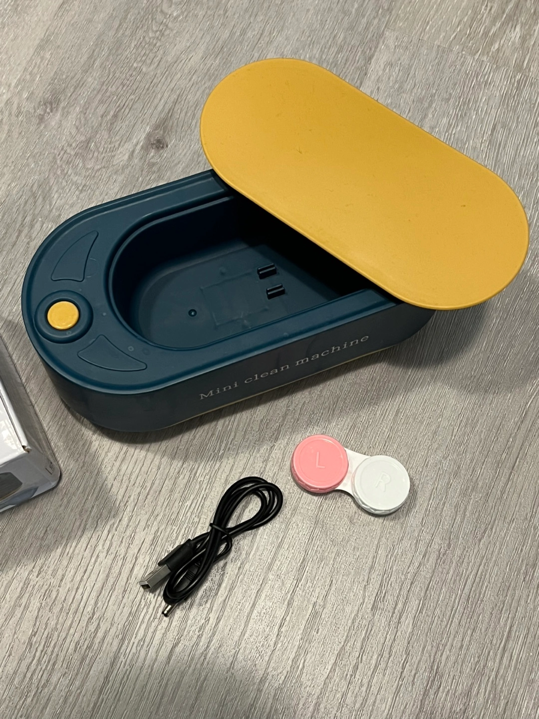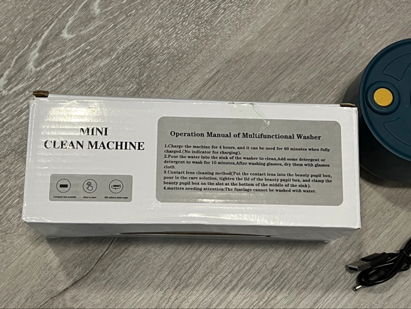 Compact and portable ultrasonic cleaner. 360-degree cleaning without dead angles. USB rechargeable. Includes charging cable and contact lens case. I have two, selling one of them!