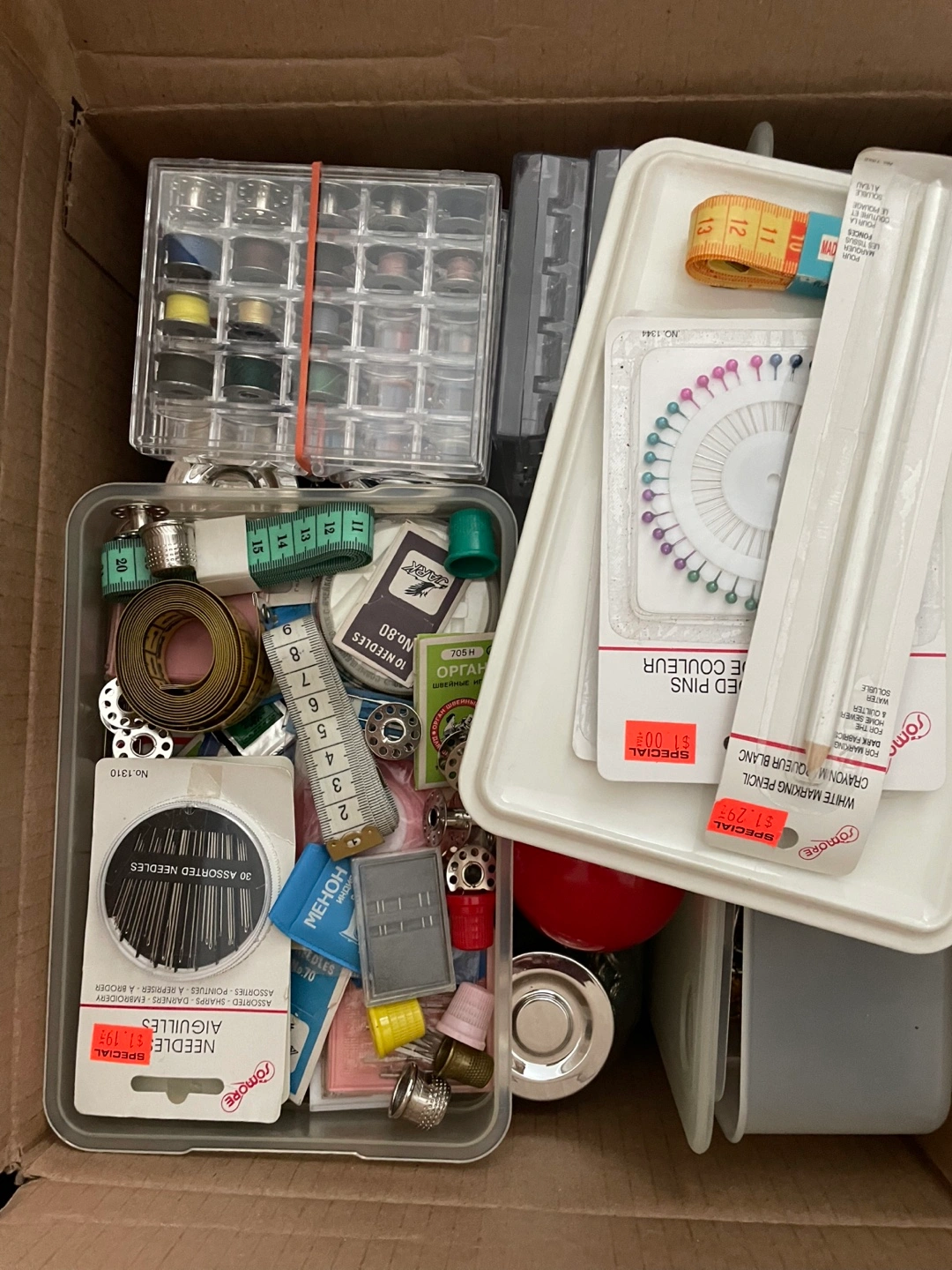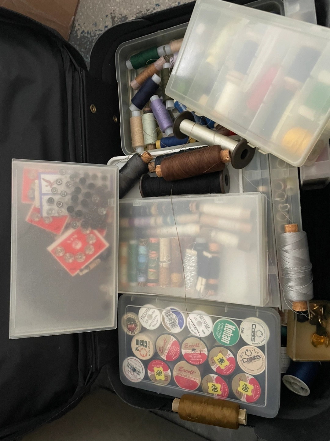 RESERVED. Large collection of sewing supplies. Includes spools of thread, needles, pins, measuring tape, buttons and more. Great for crafters and sewers.