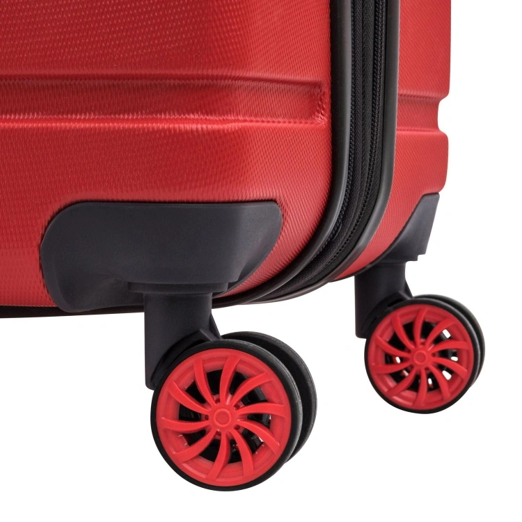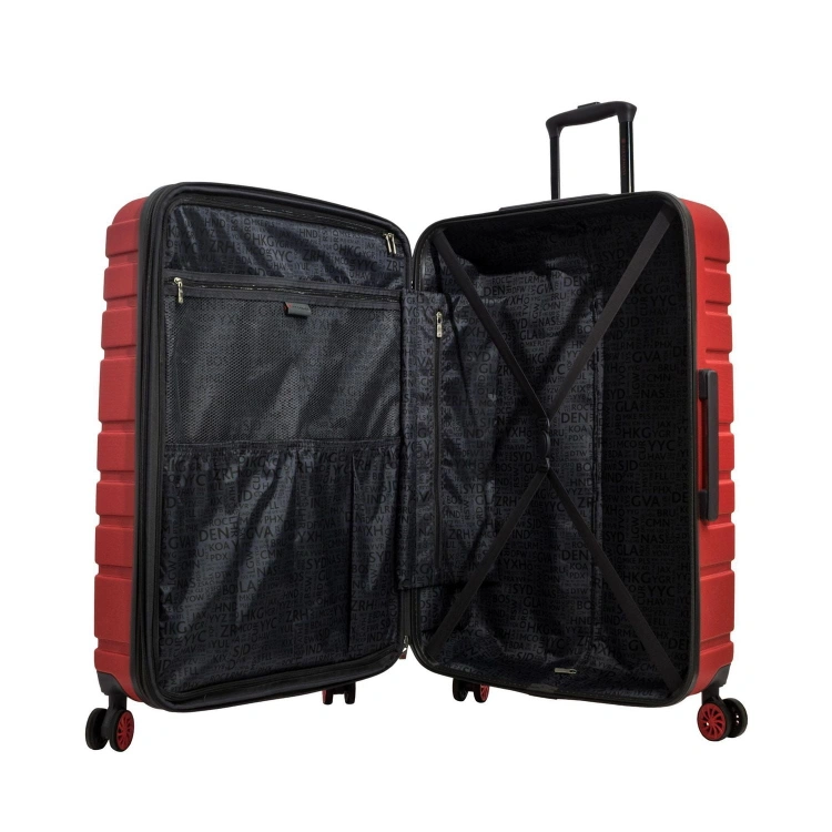 Set of two red hard shell suitcases. Spinner wheels. Multiple compartments inside. Great for travel.• Carry-on dimensions: L 14 inch x W 9 inch x H 18.5 inch • Check-in dimensions: L 19 inch x W 13 inch x H 28 inch + 2 inch expander