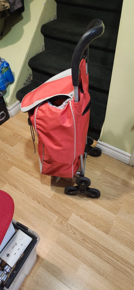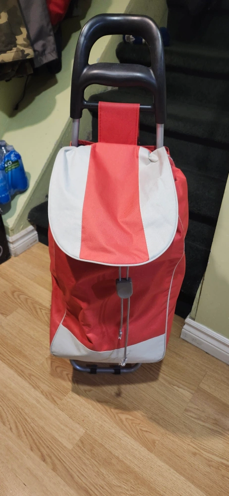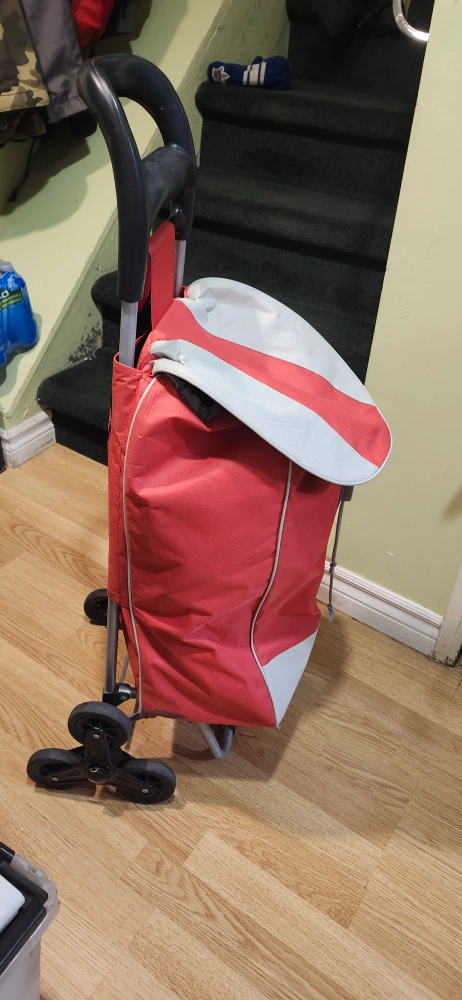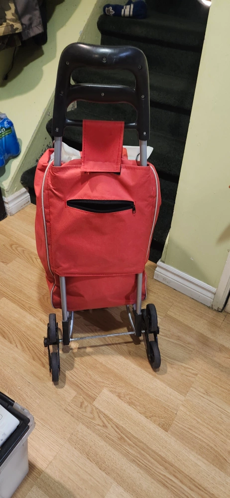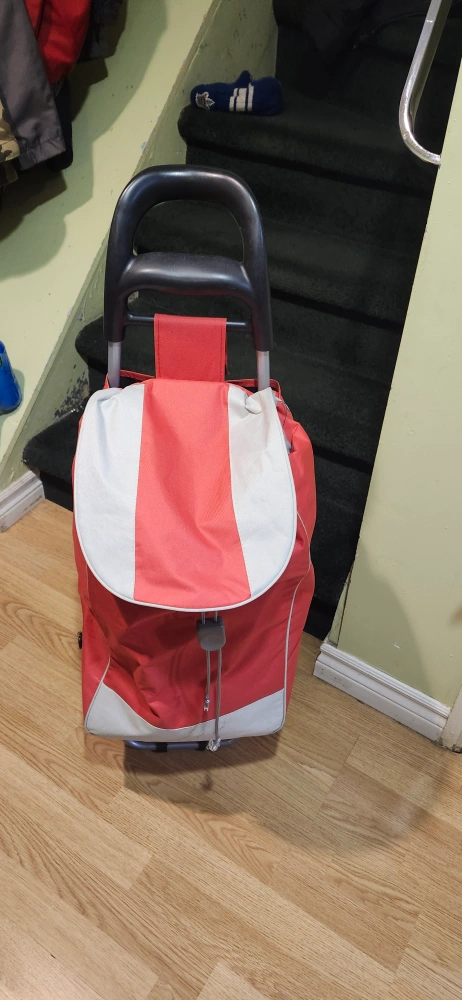 Excellent condition. Portable shopping cart. Features a red and grey fabric bag. Collapsible design. Four wheels. Convenient handle. price only cash only pickup no delivery. Meet up on 801 O'Connor drive outside TD Canada Trust bank door.