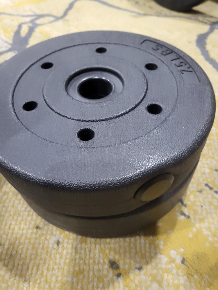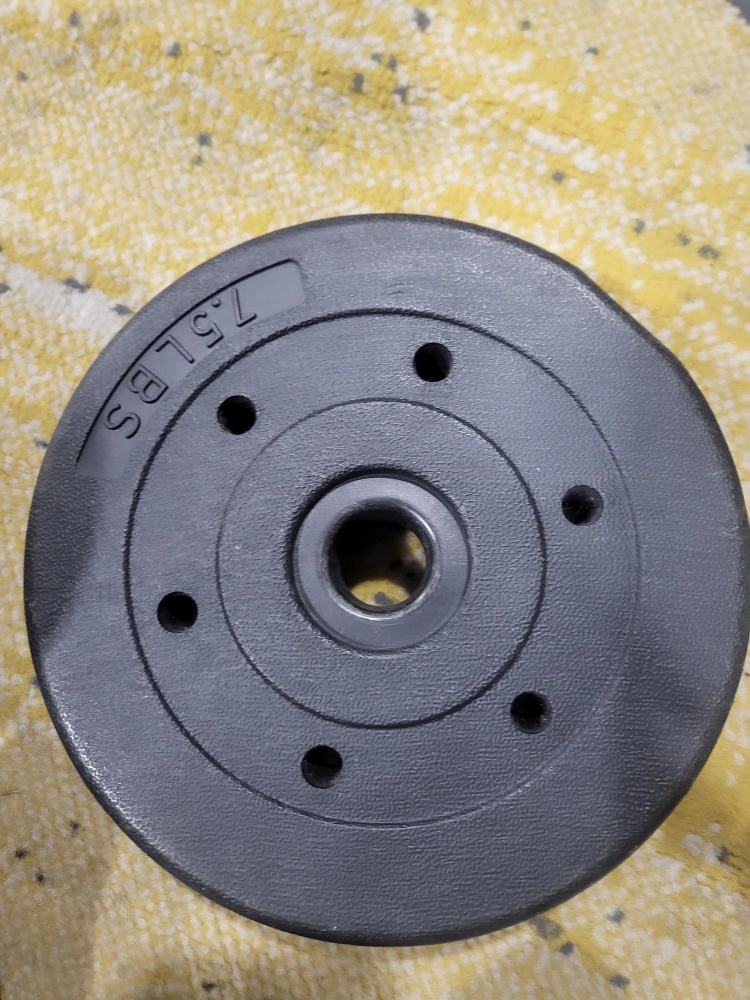Black weight plate. 7.5 lbs. Good for home gym. Small and easy to store. set of 2.
