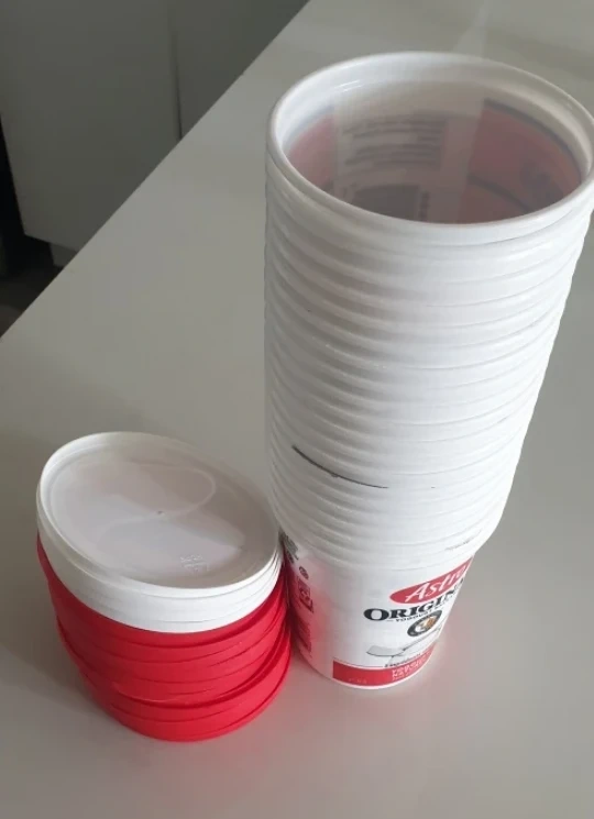 Stack of Yogurt containers. Includes lids. Great for storage or crafting.