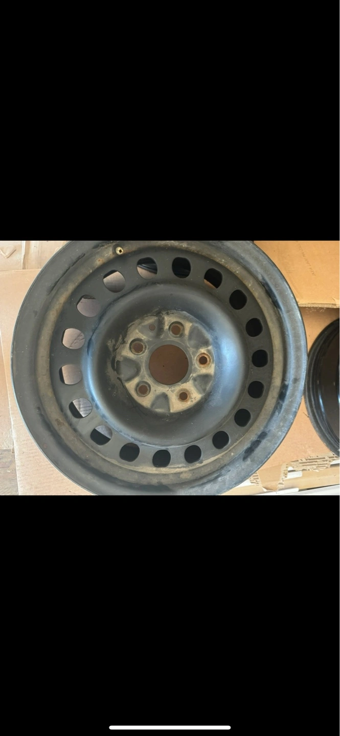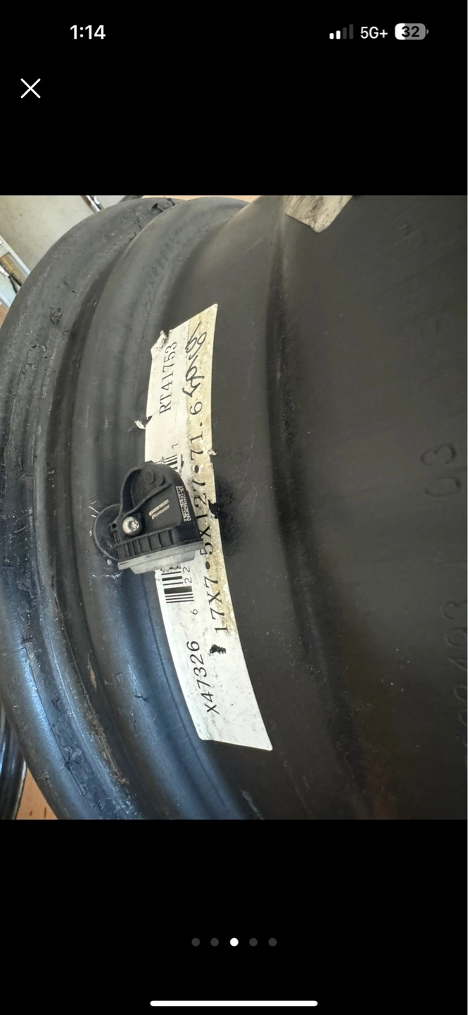 Used 17-inch steel wheel rim. Black finish. Some surface wear. TPMS sensor included. Good condition.asking $100 for all 4