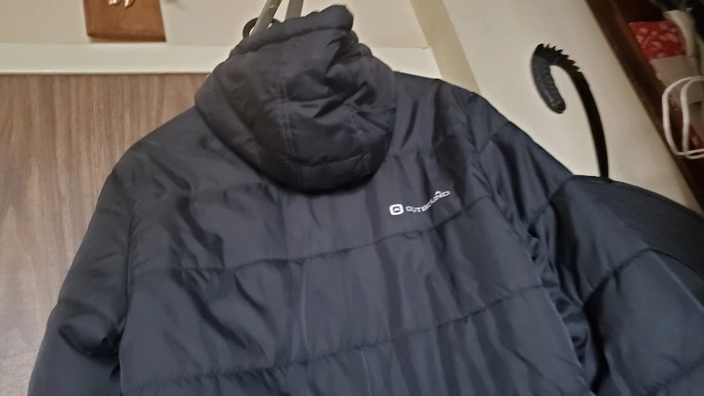 last chance: Black puffer jacket. Size small men's medium if for a woman Full zip closure. Hood. Good condition.