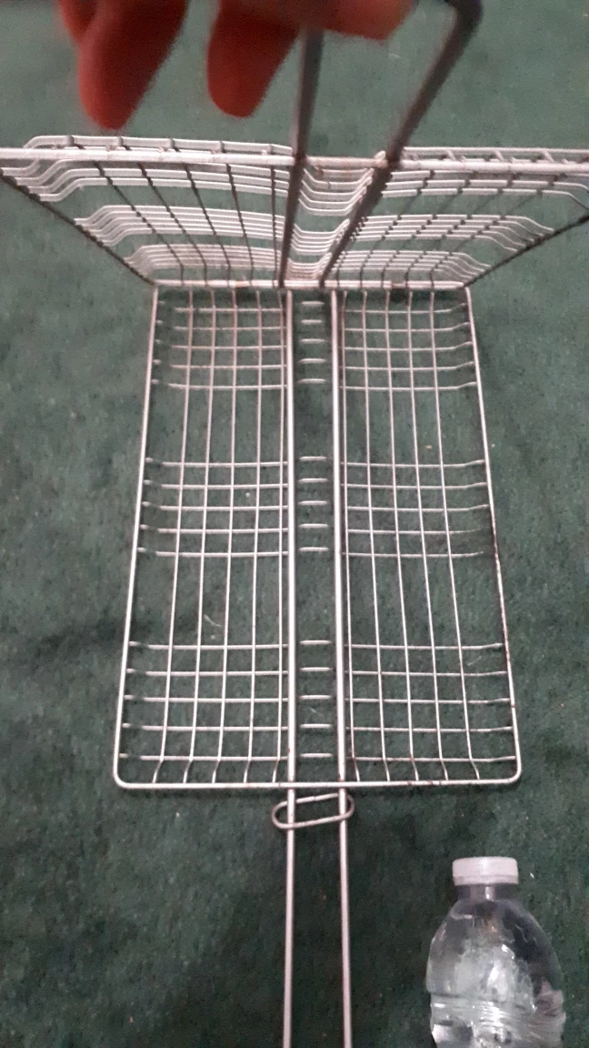 Metal BBQ grill basket. Great for grilling vegetables and smaller foods. Features a long handle for easy use. Durable construction. Used condition.