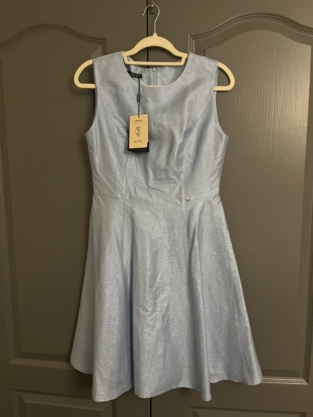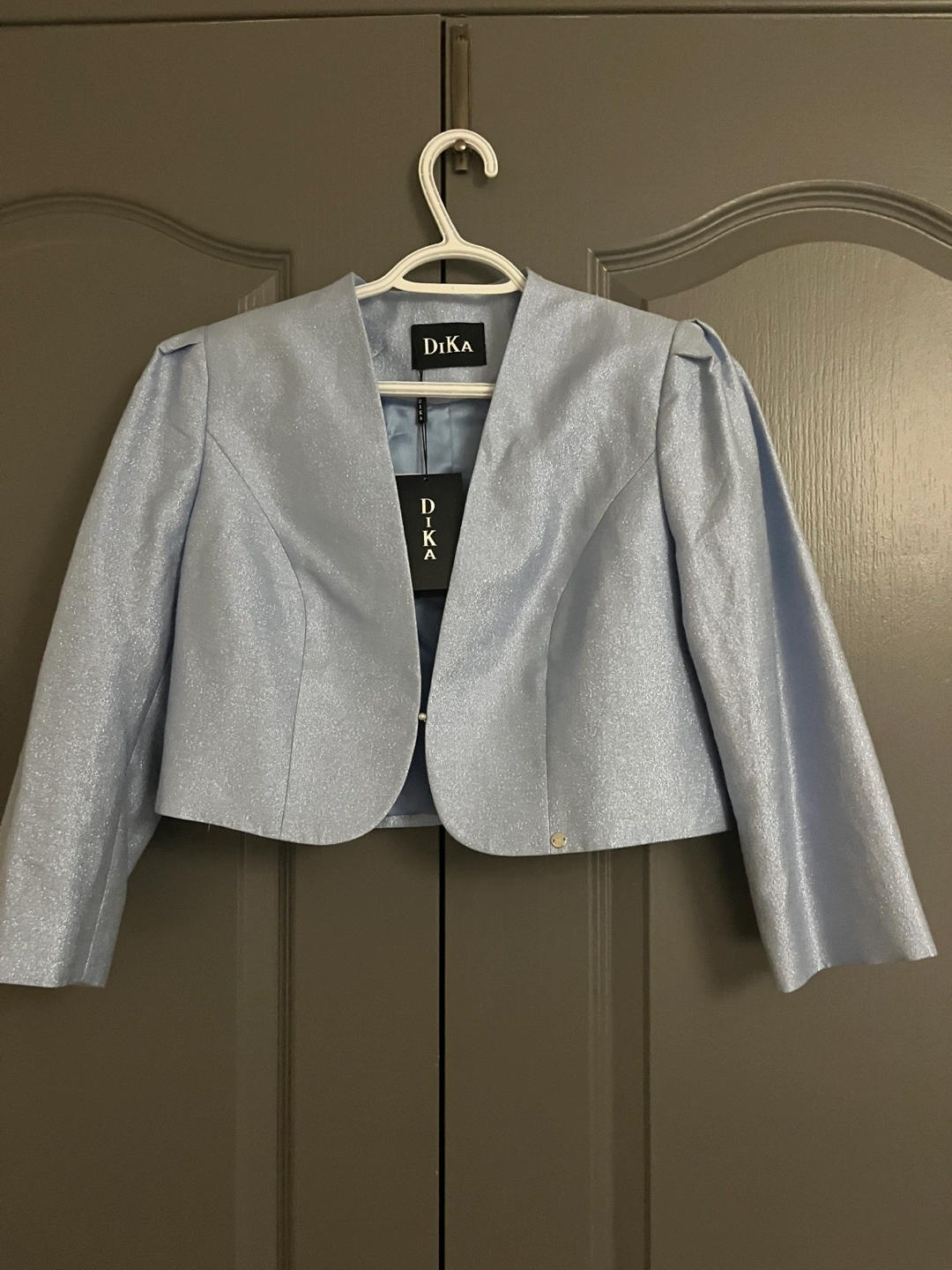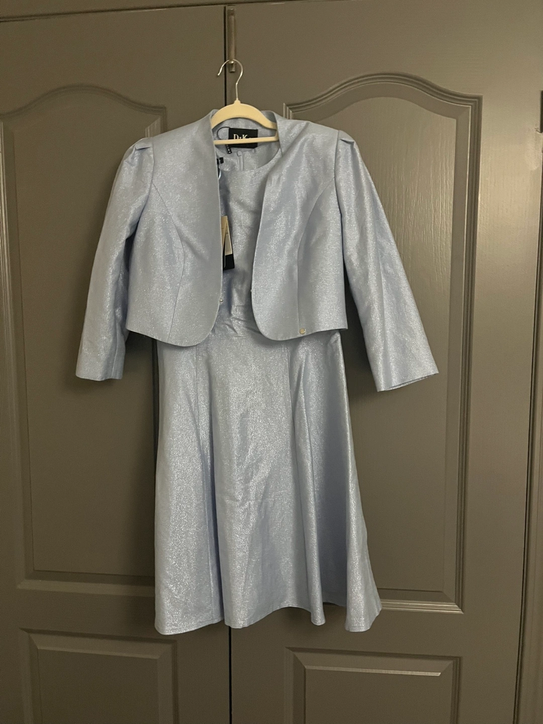 Gorgeous light blue sparkle dress and matching bolero jacket. Size 12. Perfect for a wedding or special occasion. New with tags.