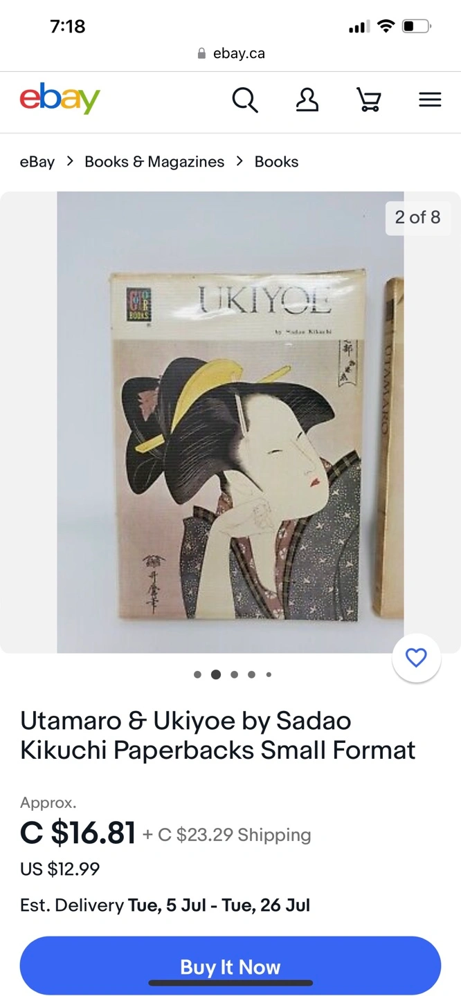 Small format paperback book. Features images of Utamaro's artwork. Good condition.