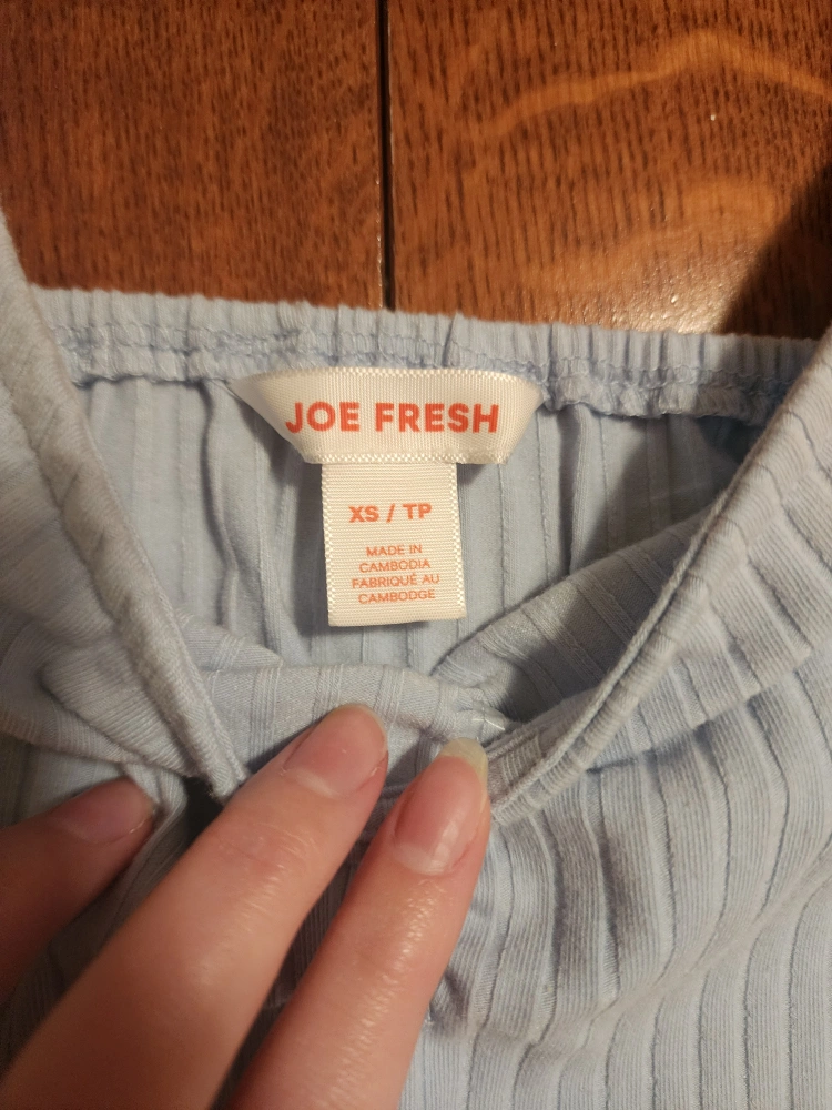 Worn once and in great condition! Baby blue colour with stretchy ribbed body. Rouched at bust. Eyelet flutter sleeve that is adjustable to on or over shoulder. Pick up at Sheppard West subway station and cash only please :)