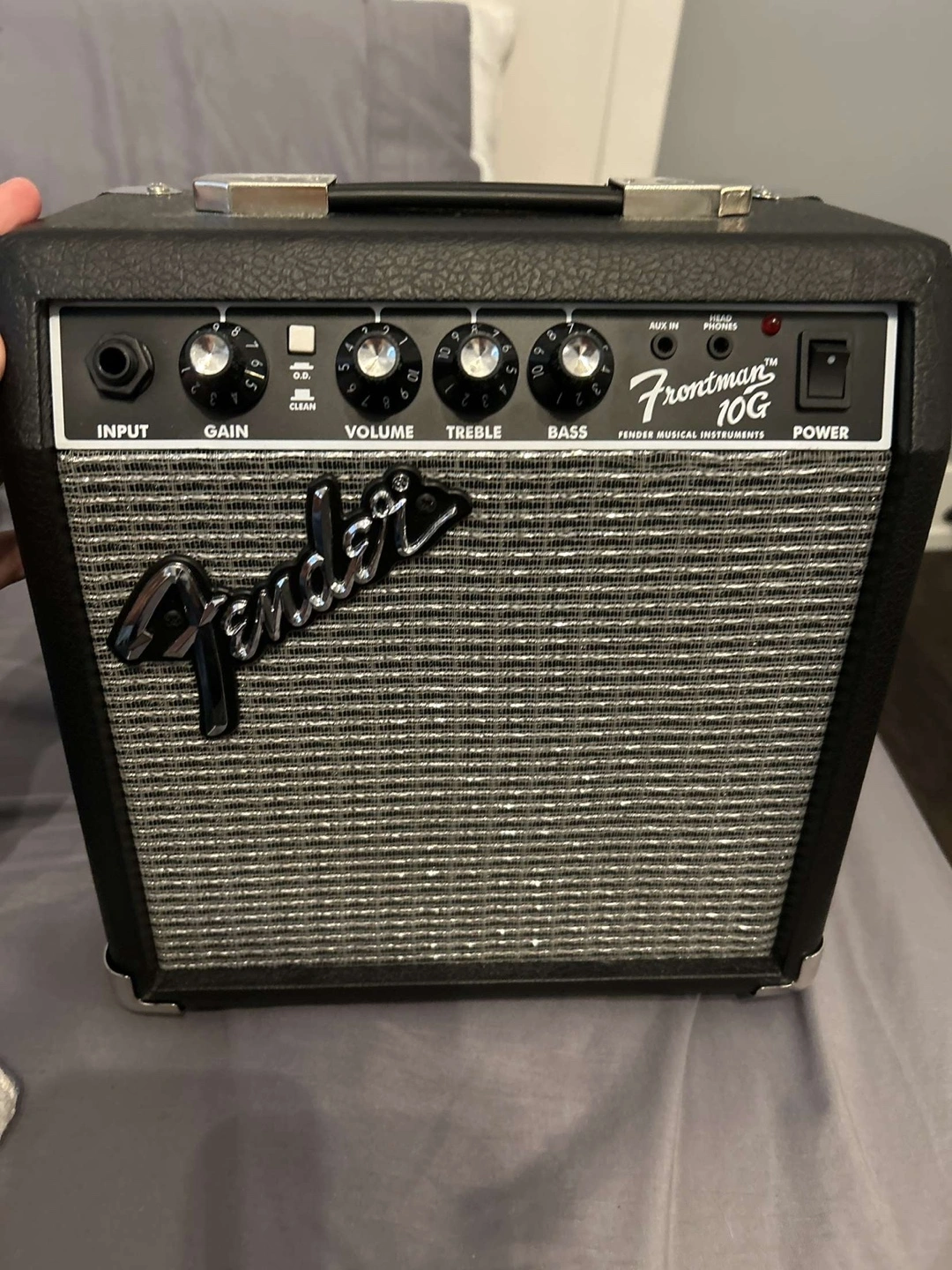 Great condition Barley used Great for beginners Here are some additional specs: * Output: 10 Watts * Speaker: 6-inch Fender Special Design * Controls: Gain, Volume, Treble, Bass * Inputs: One 1/4 inch * Auxiliary Input: 1/8 inch * Headphone Jack: 1/4 inch