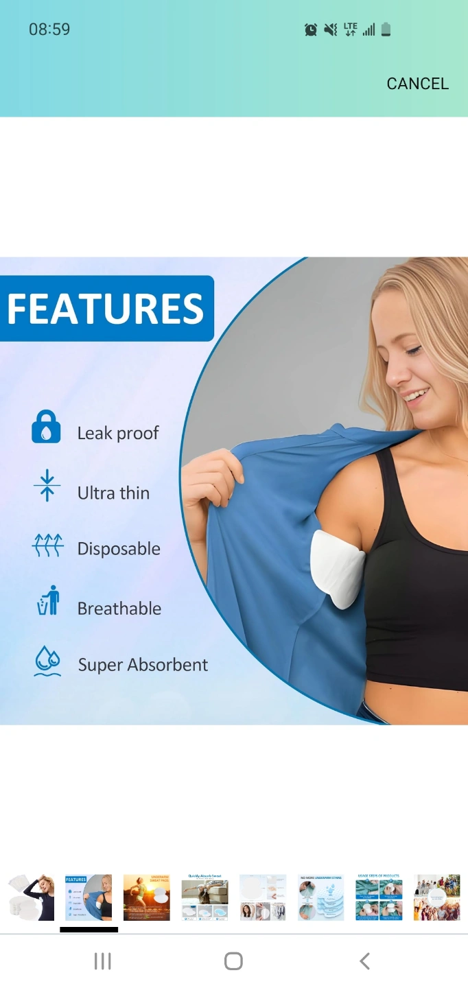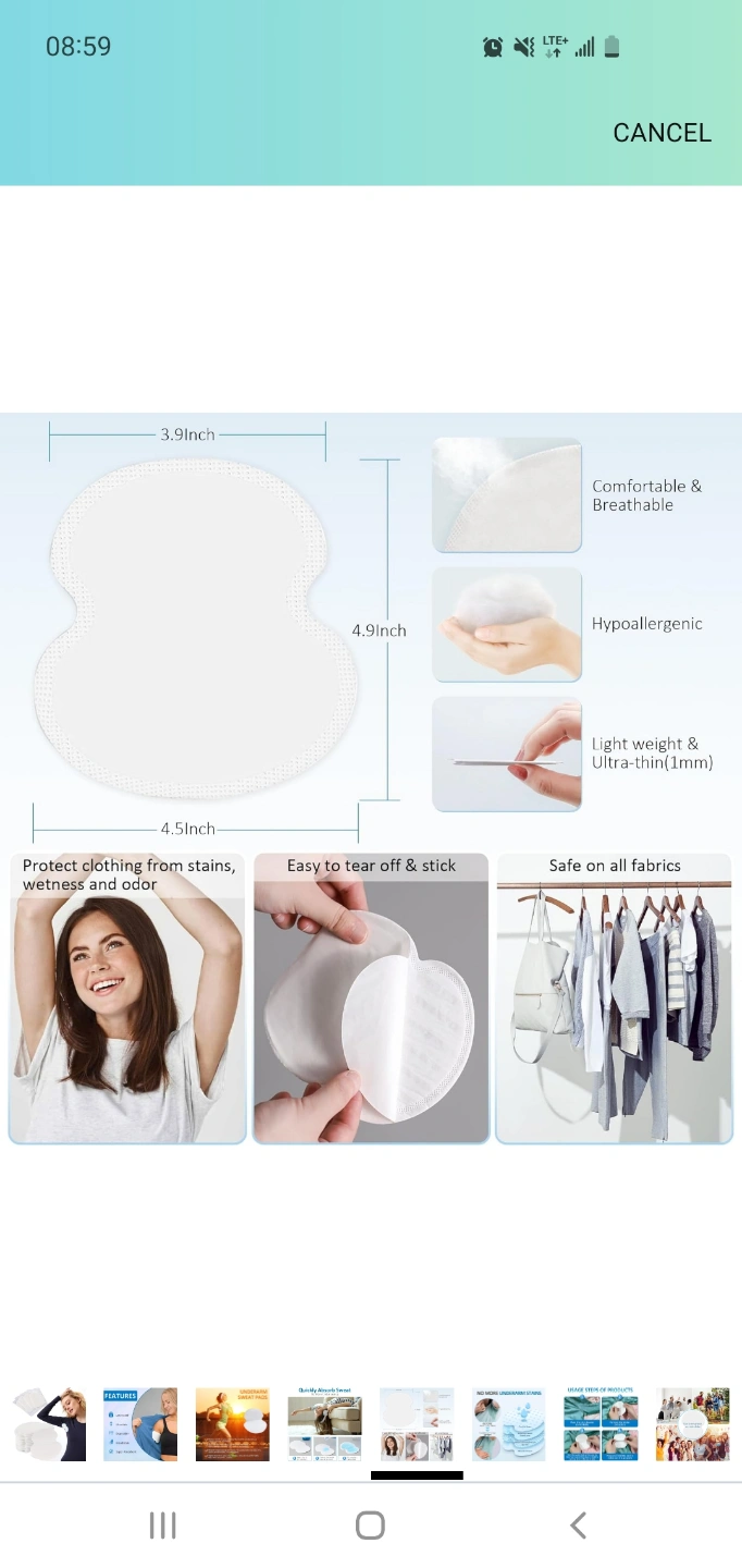 Highly absorbent disposable pads. Prevent embarrassing wet marks. Leak proof, ultra-thin, breathable, and hypoallergenic. Extend clothing life. Save on dry cleaning. Pads won't show through clothes. pack of 100. $25+tax on Amazon.