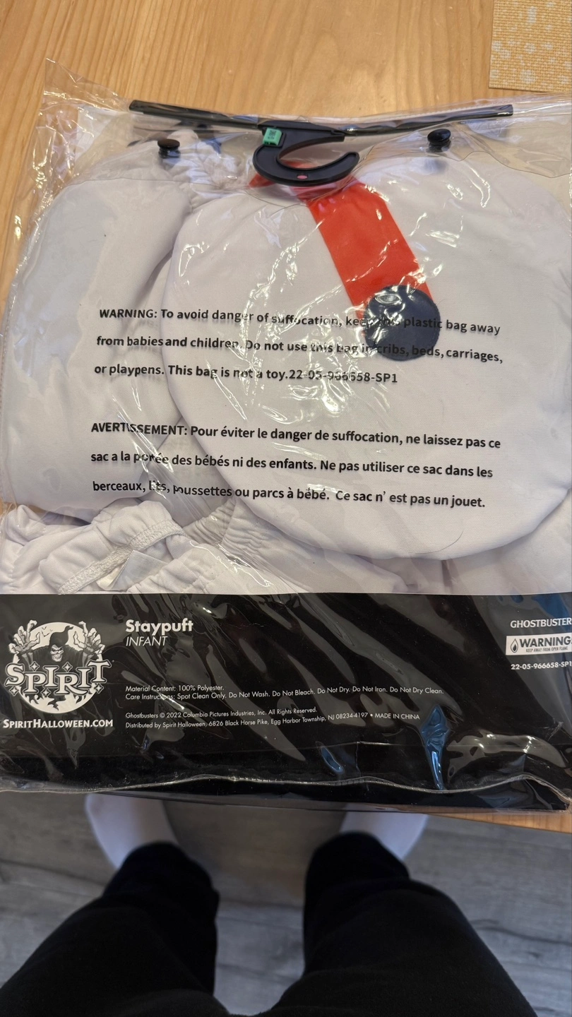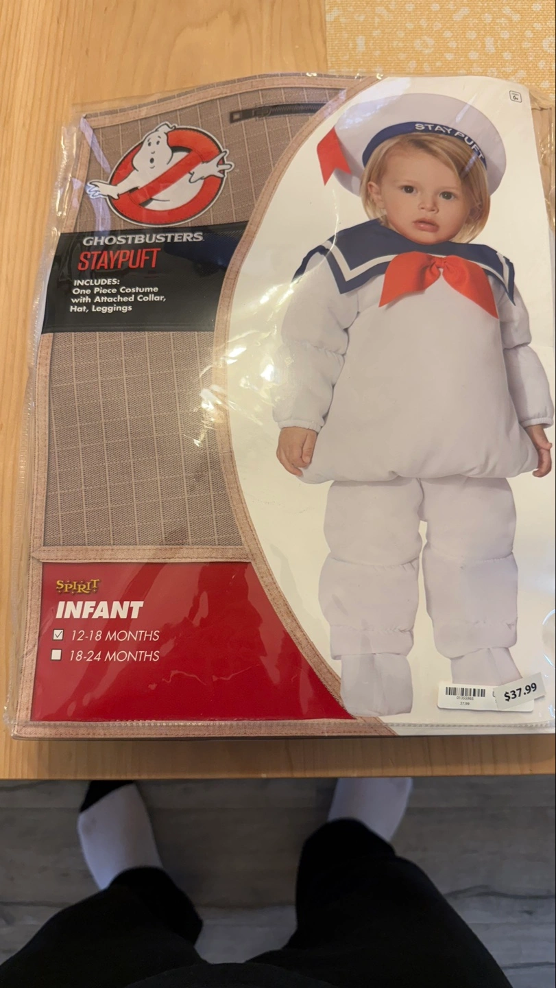 Adorable Ghostbusters Stay Puft infant costume. Size 12-24 months. Includes jumpsuit with attached collar, hat, and leggings. Brand new with tags.