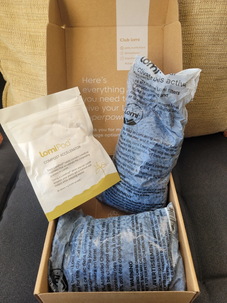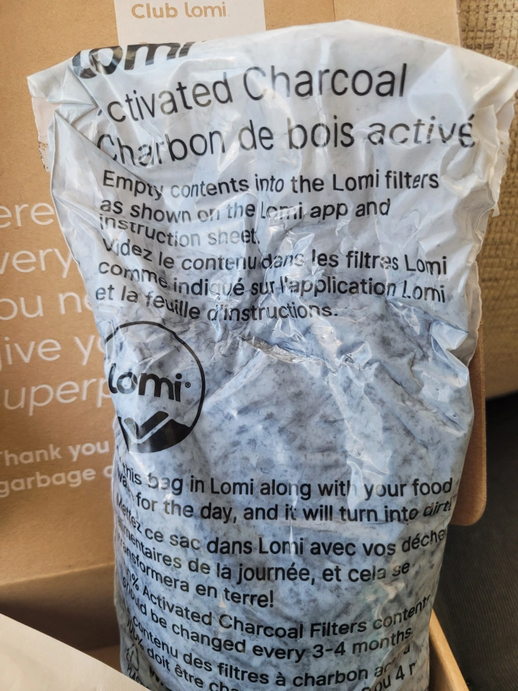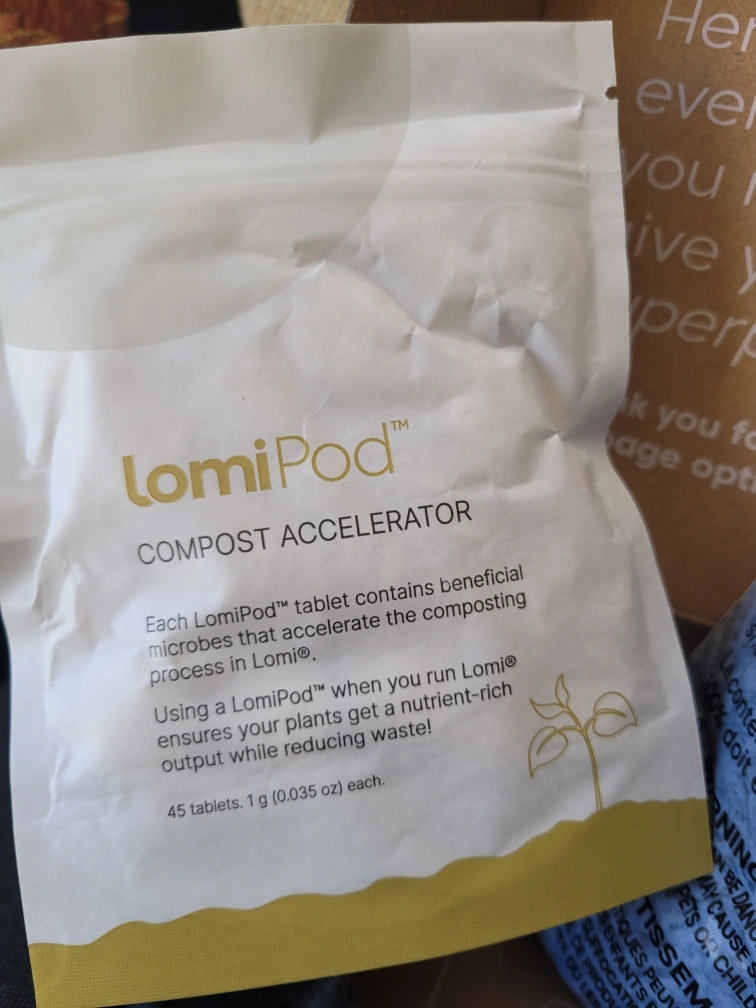Lomi compost accelerator tablets. 1 bag - 45 tablets included. and 2 bags of Activated charcoal filters for Lomi. Reduces odour. Use with Lomi composter. $60 +tax on Amazon asking $30 from Amazon: Lomi Pods and Filters - The Best Ever Way to Supercharge and Keep Lomi Fresh The only Pods and Filters made exclusively by Lomi in Canada and North America The best Pods for happy plants – Creates nutrient-rich Lomi Earth that enhances soil health. Mix with soil in a 1:10 ratio for a natural fertilizer. The best at fighting odors – Activated carbon for ultimate freshness, ensuring your kitchen stays odor-free What’s Included: Your order includes two bags of activated charcoal (equal to one refill) for odor control and one bag of Lomi Pods to enrich your compost.