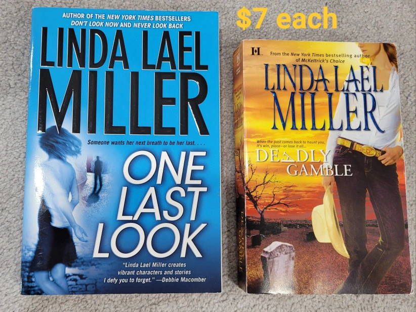Two used paperback novels by Linda Lael Miller. One Last Look and Deadly Gamble. $7 each.