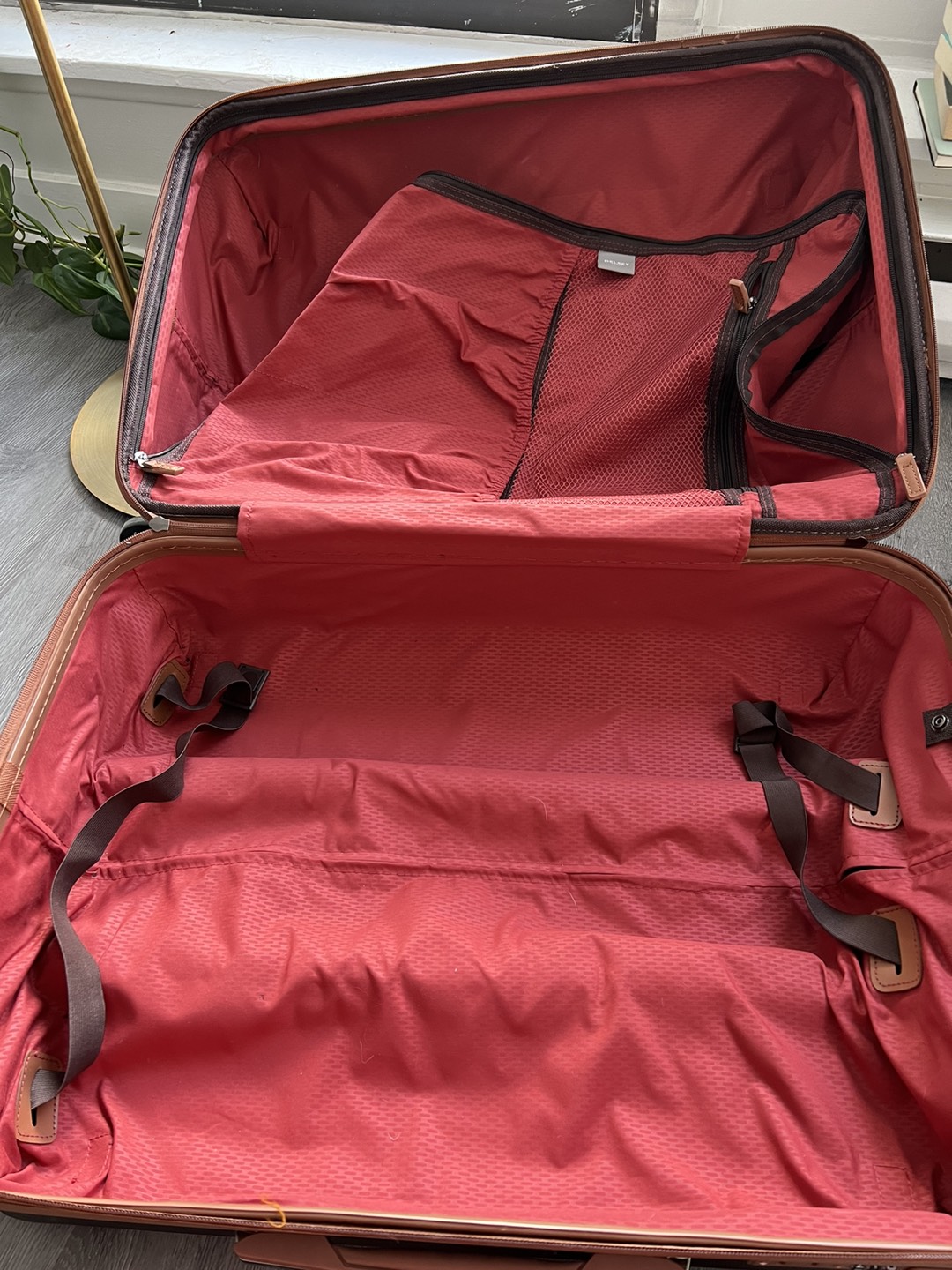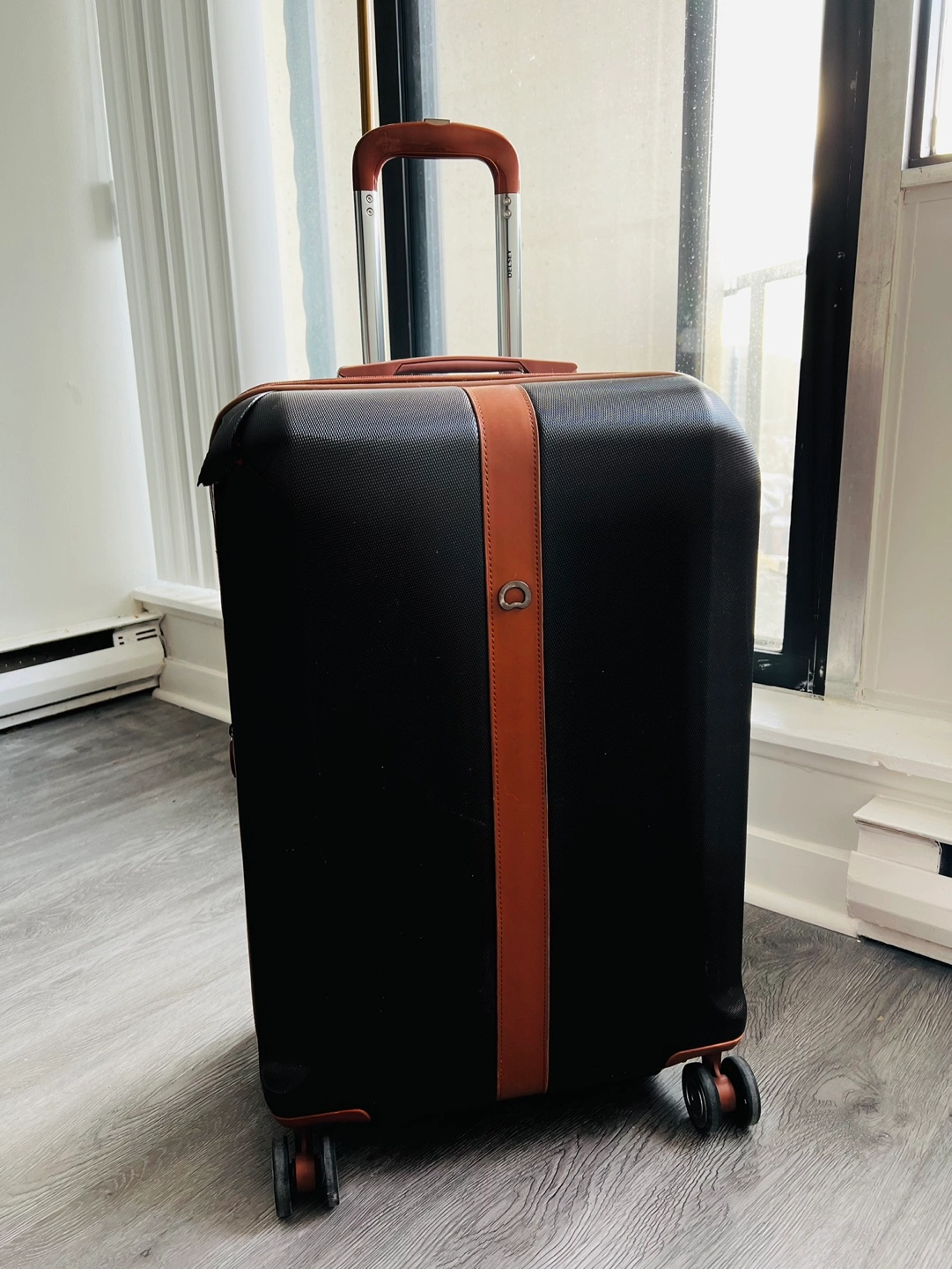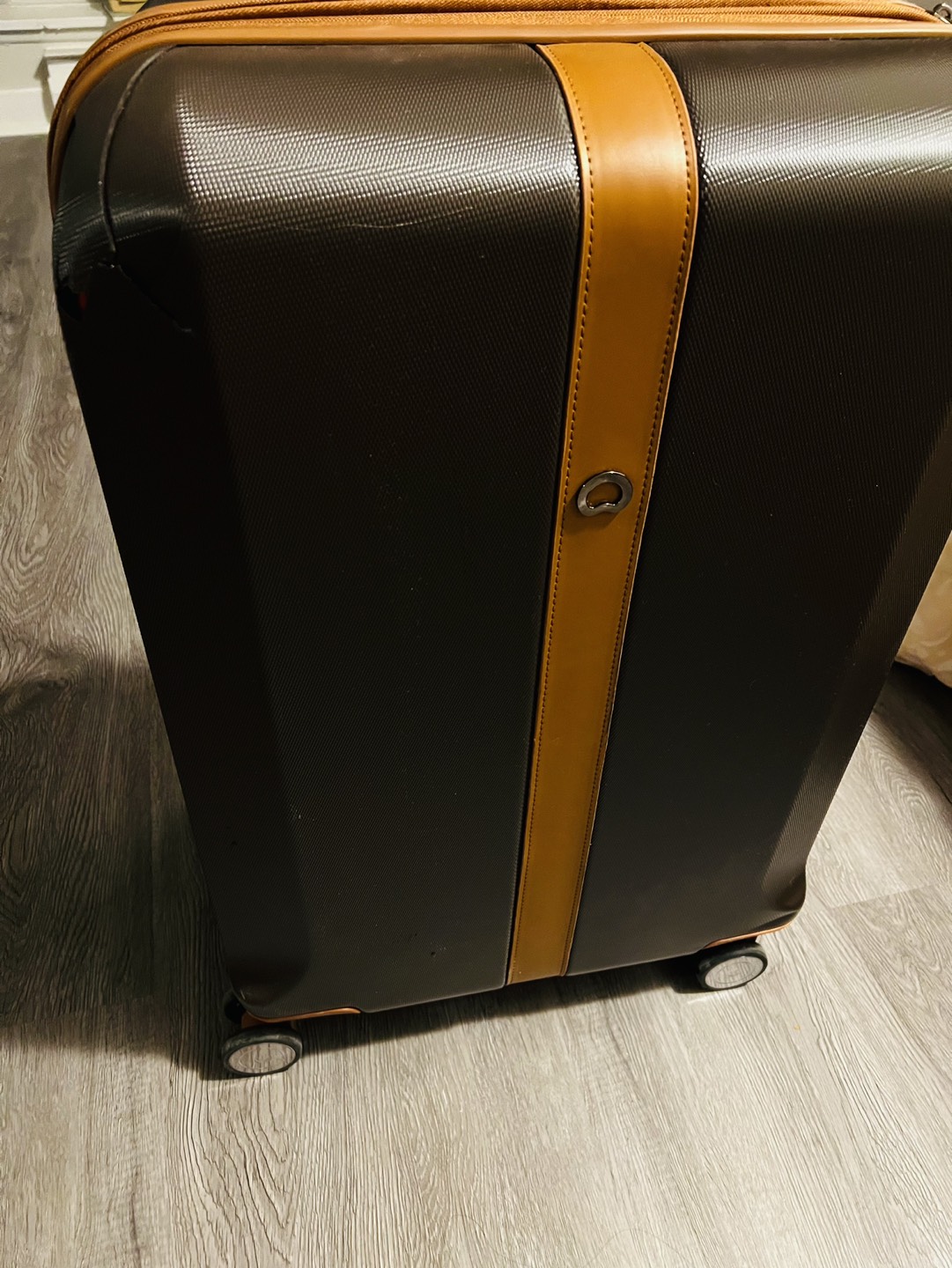 Delsey Paris hard-shelled check-in luggage used once for international travel. A small corner of the luggage got damaged as it got stuck in the conveyer belt but this is repairable. The rest of the luggage is in mint condition as you can see in the photos. The wheels are intact and in perfect condition. I bought this luggage for $150. Thought someone would be interested in using it for commuting or storage so listing it here. Cash only. Pick up please downtown Toronto.