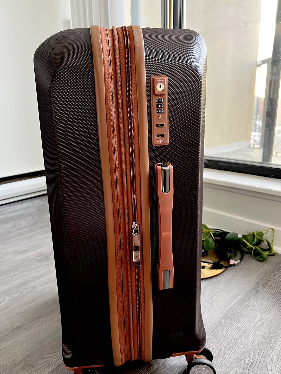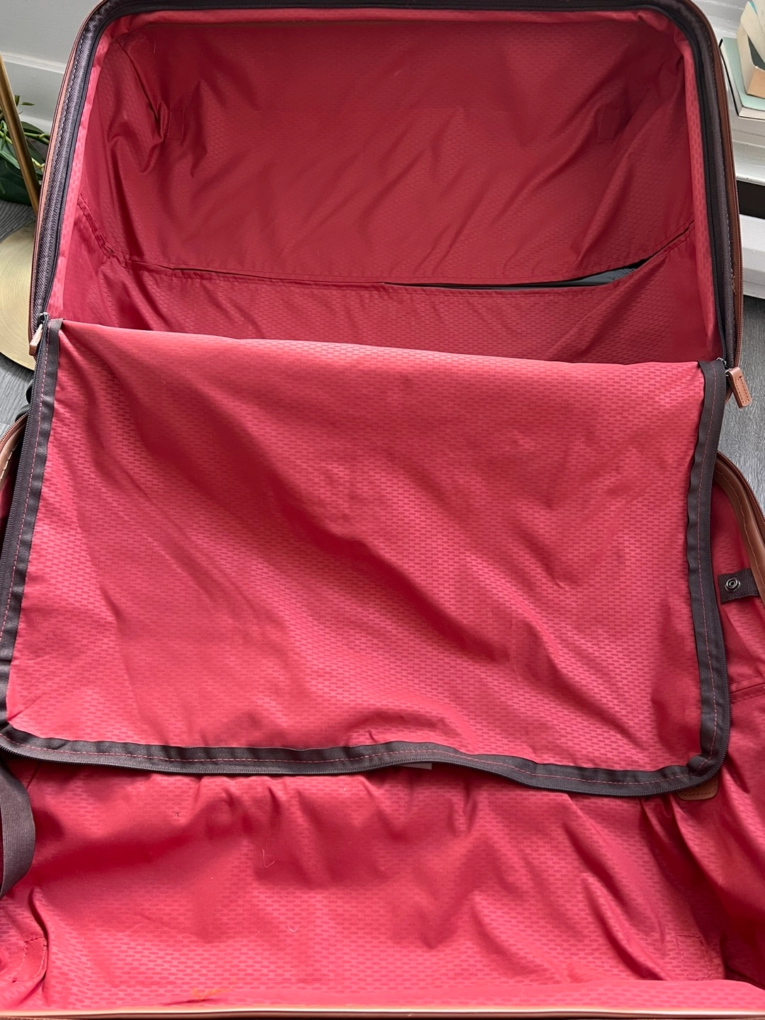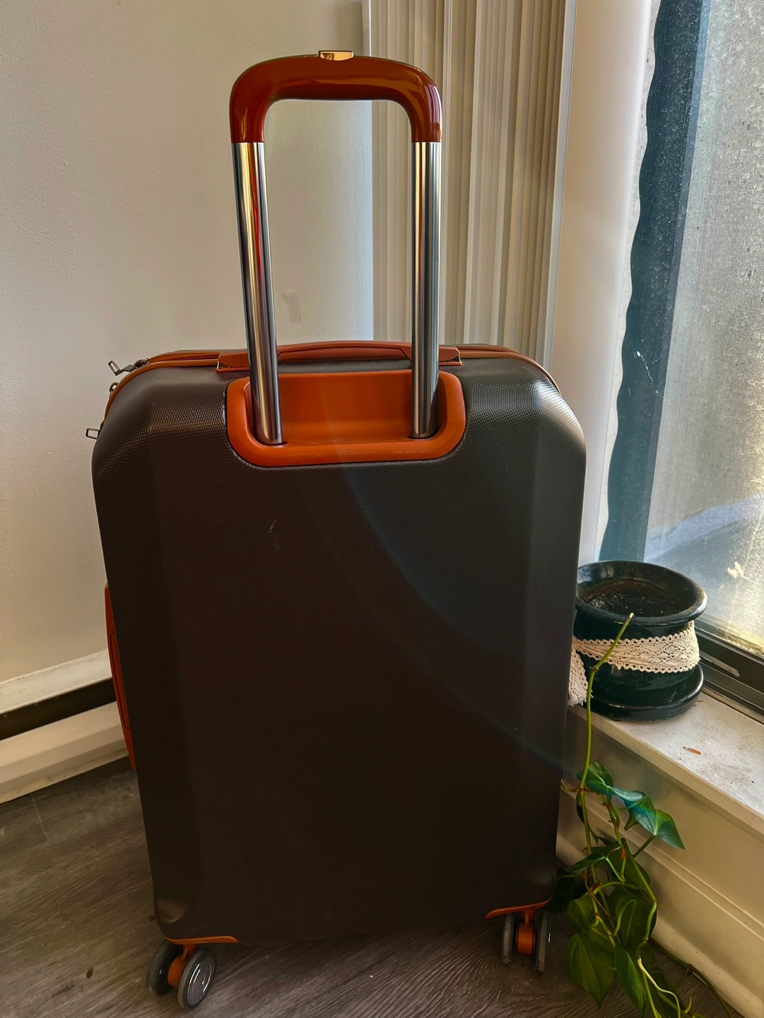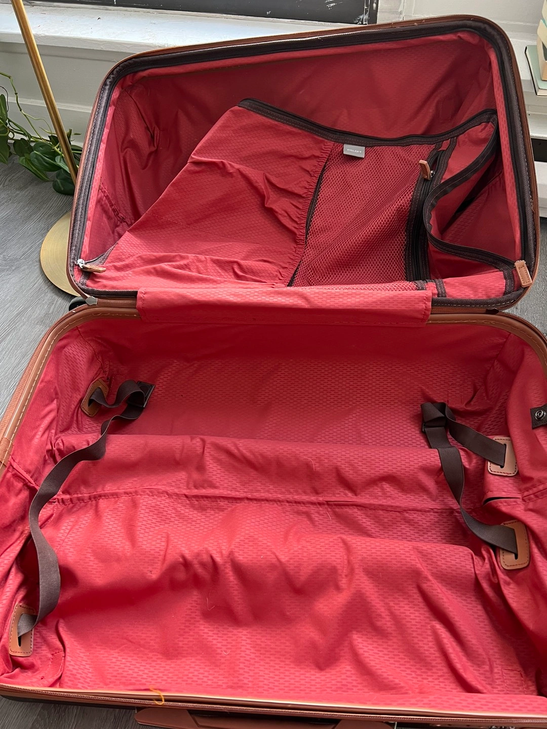 Delsey Paris hard-shelled check-in luggage used once for international travel. A small corner of the luggage got damaged as it got stuck in the conveyer belt but this is repairable. The rest of the luggage is in mint condition as you can see in the photos. The wheels are intact and in perfect condition. I bought this luggage for $150. Thought someone would be interested in using it for commuting or storage so listing it here. Cash only. Pick up please downtown Toronto.