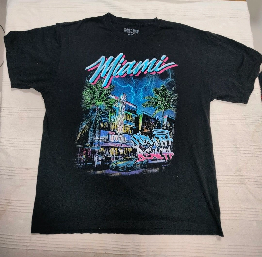 Black T-shirt. Features Miami graphic. Size L good pre-owned condition