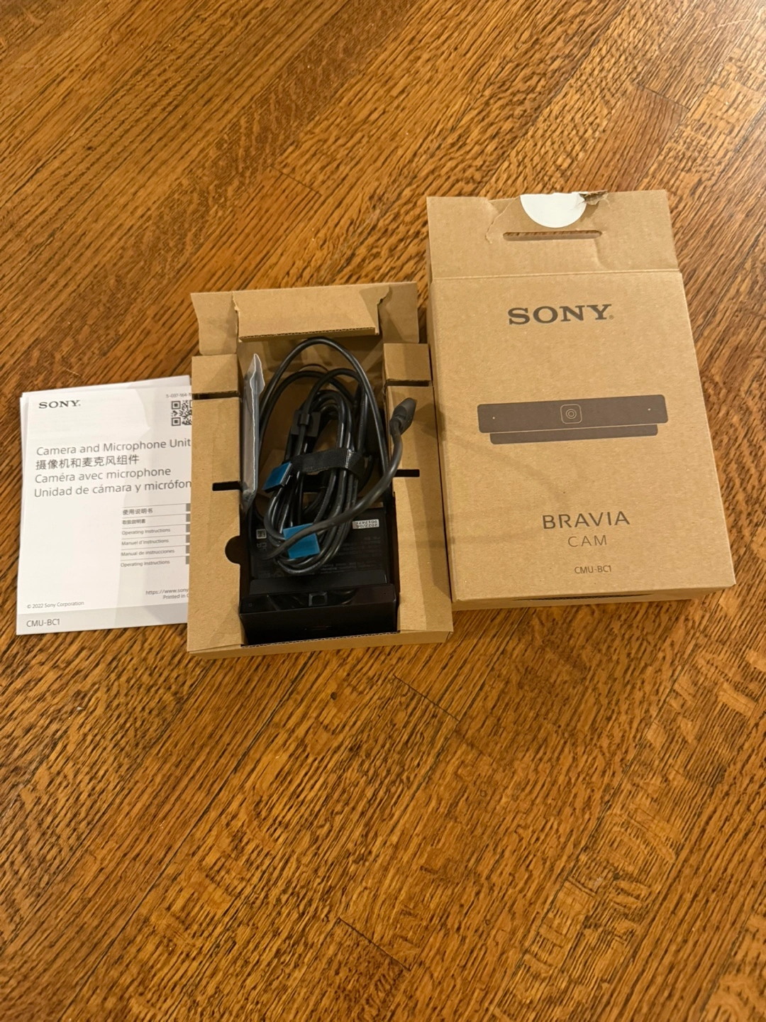 Brand New, Sony Bravia Cam never been used. Includes camera, microphone, and cables. Model CMU-BC1. Perfect for video conferencing. Pick up location is Yonge and Steeles. Cash only