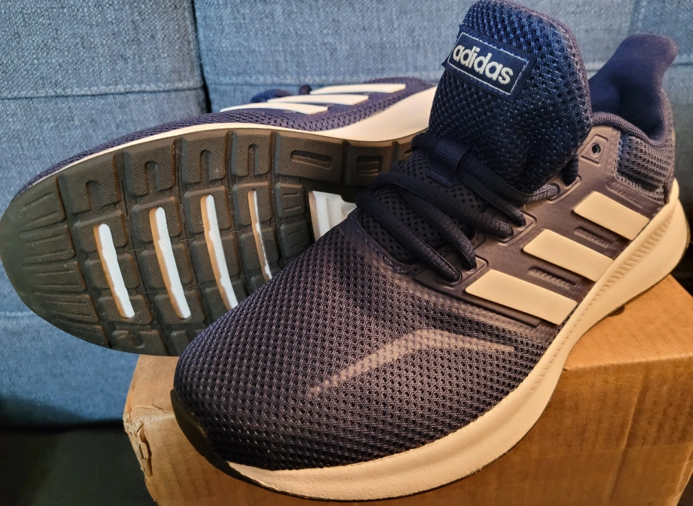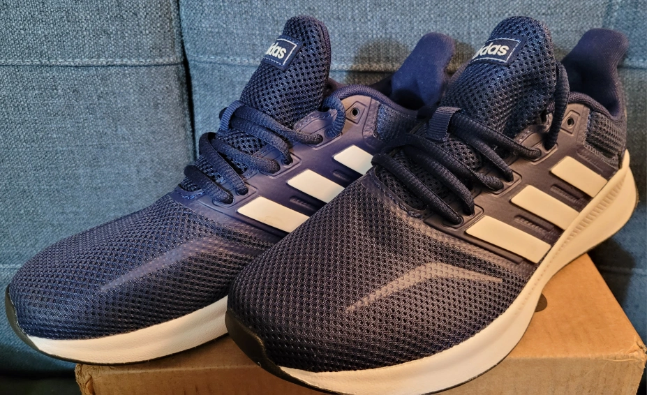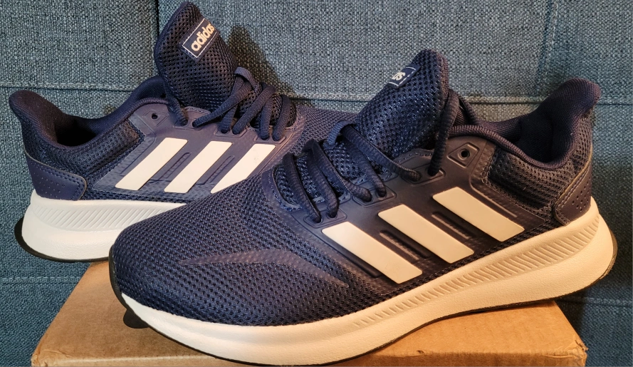 youth / Men's Adidas Runfalcon running shoes. Navy blue with white accents. Lace-up closure. Comfortable and stylish. New, never worn. Great for Men size 6.5 or youth / boys.