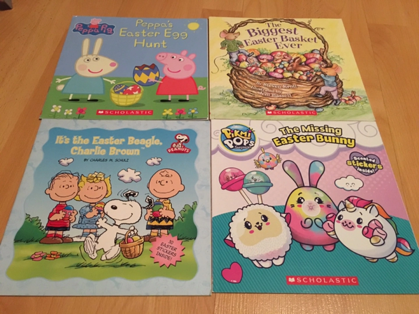 Collection of four children's books. Peppa Pig's Easter Egg Hunt, The Biggest Easter Basket Ever, It's the Easter Beagle, Charlie Brown, and The Missing Easter Bunny. Perfect for Easter baskets or spring reading. Selling each book for $2.50