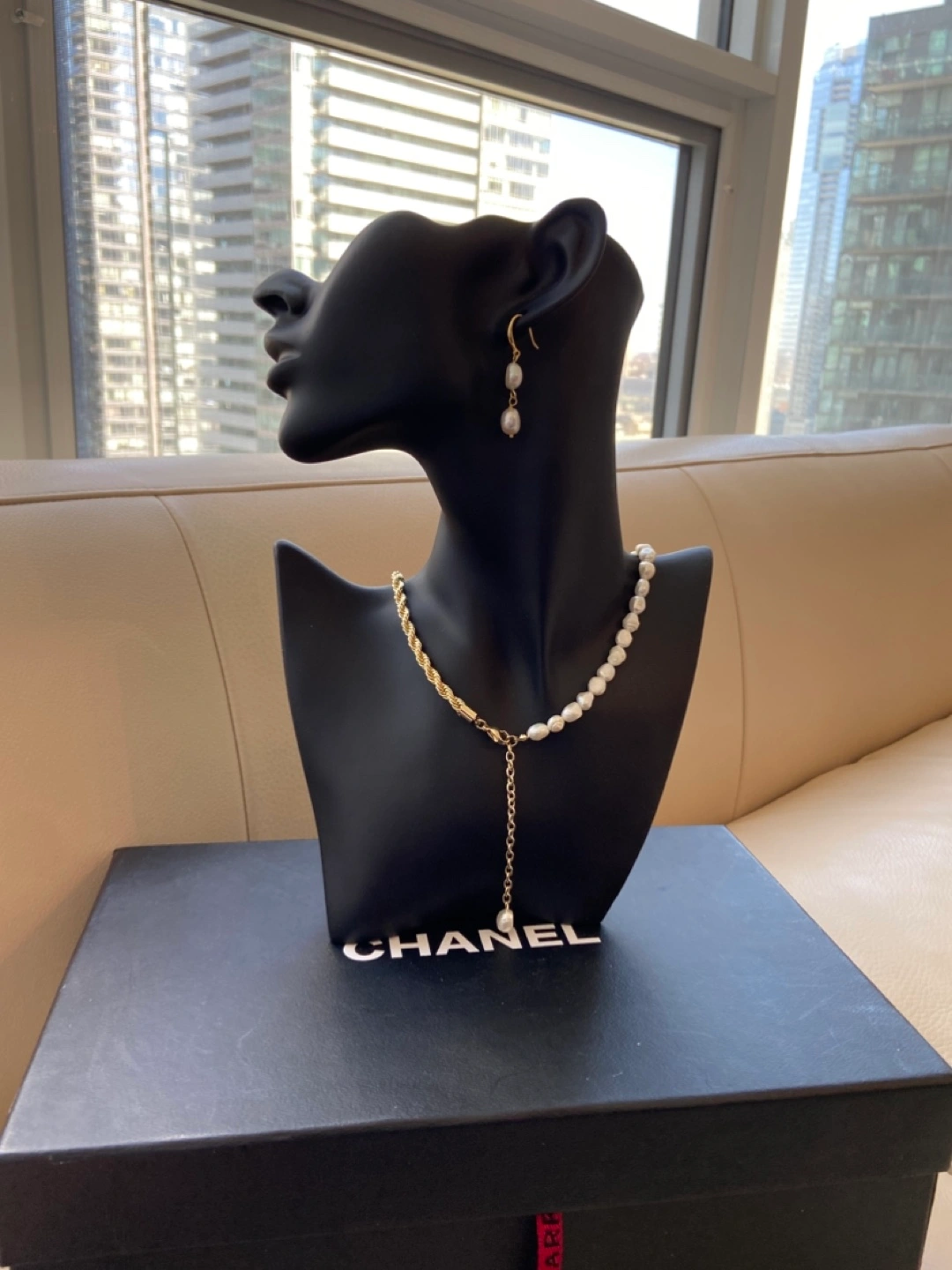 Genuine 18K Gold over vintage Brass | Natural Pearls Set