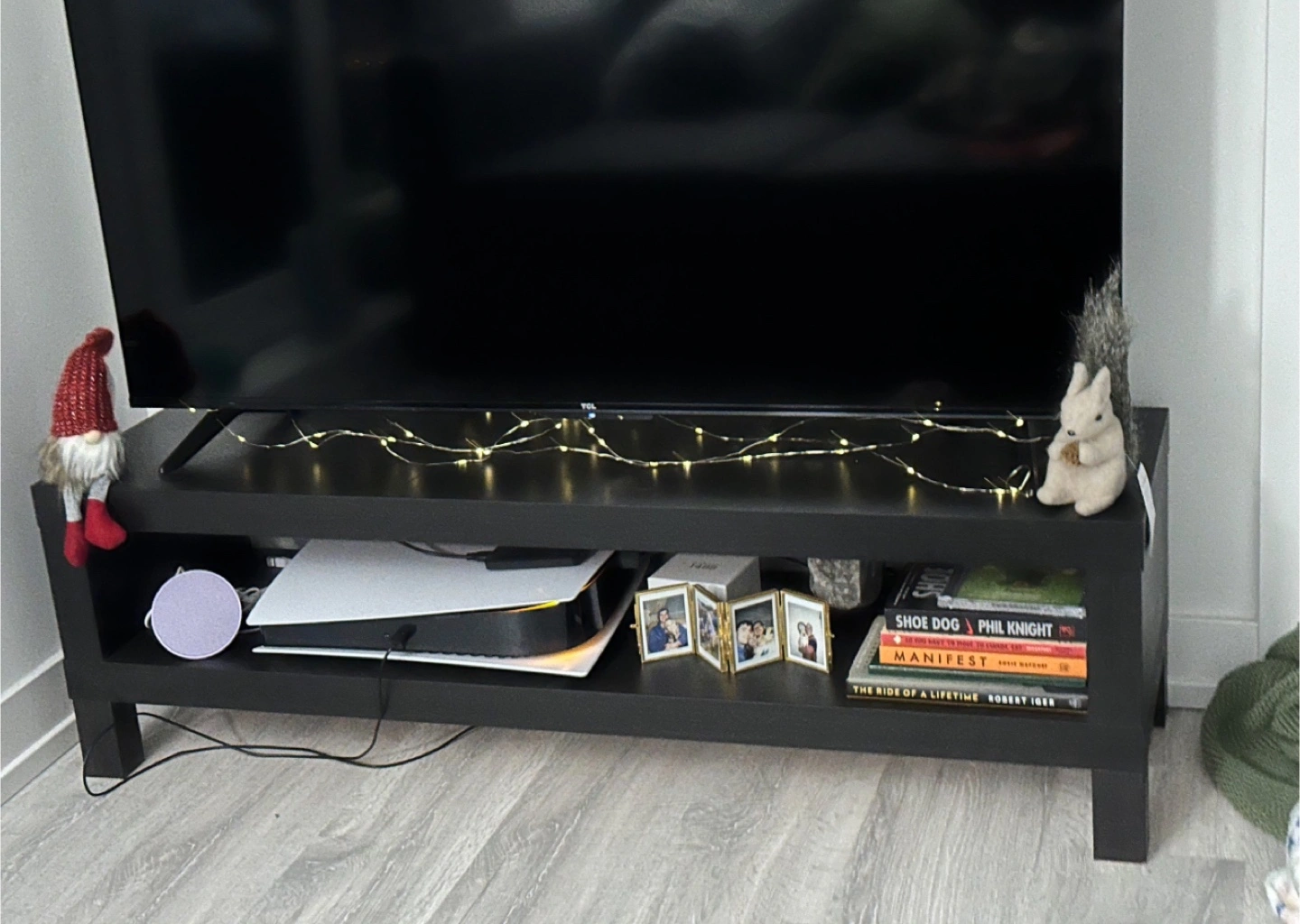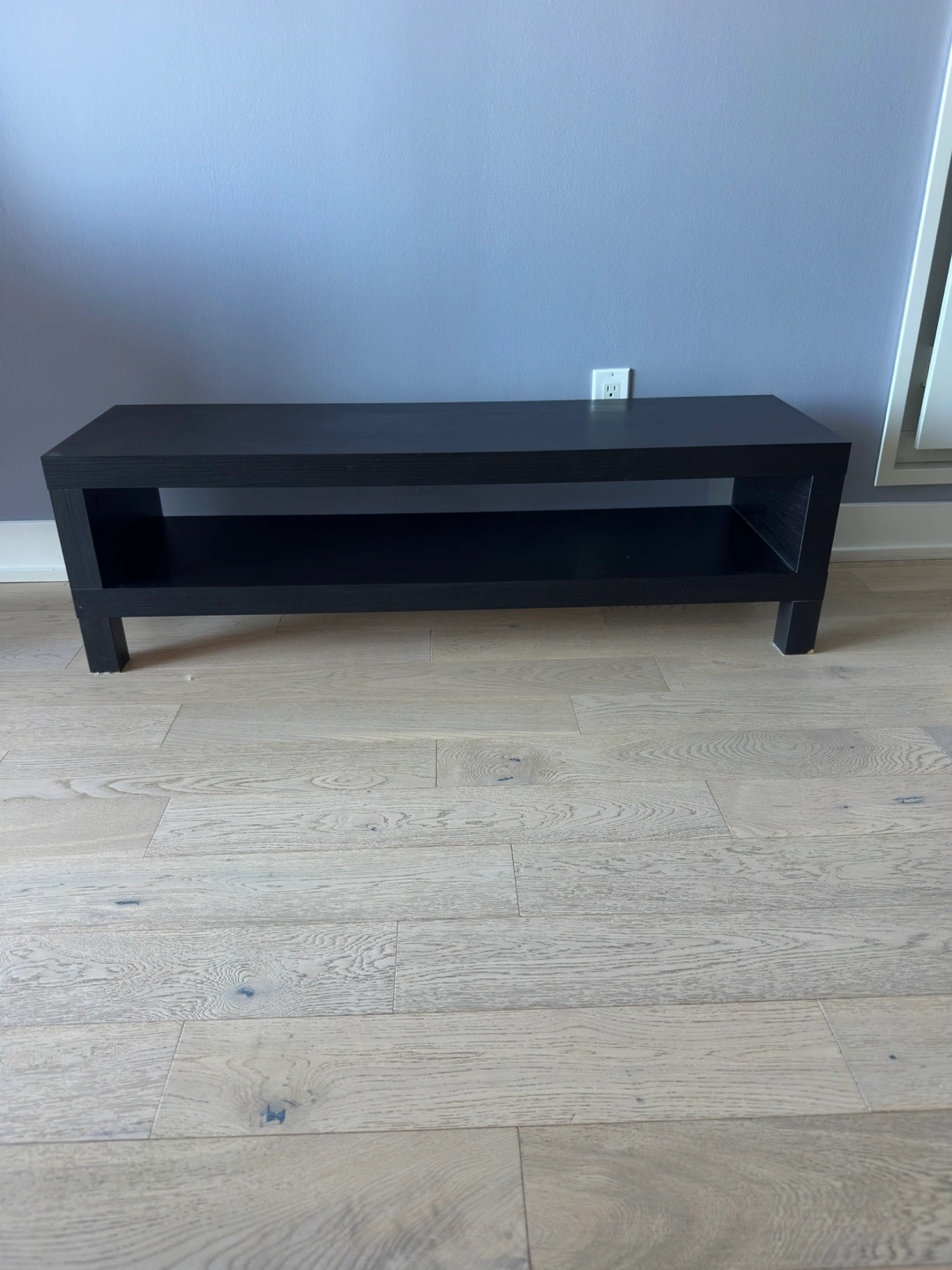 Low TV bench from Ikea One chip on one leg, came damaged from Ikea. We always just faced this leg to the back and you never saw it! Dimensions in 3rd picture. Pick up Queen and Dufferin ideally ๐ Please message me if you have any questions!