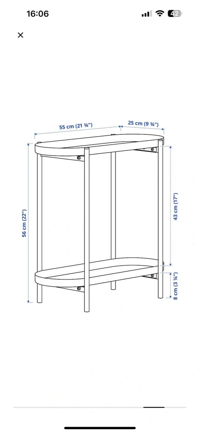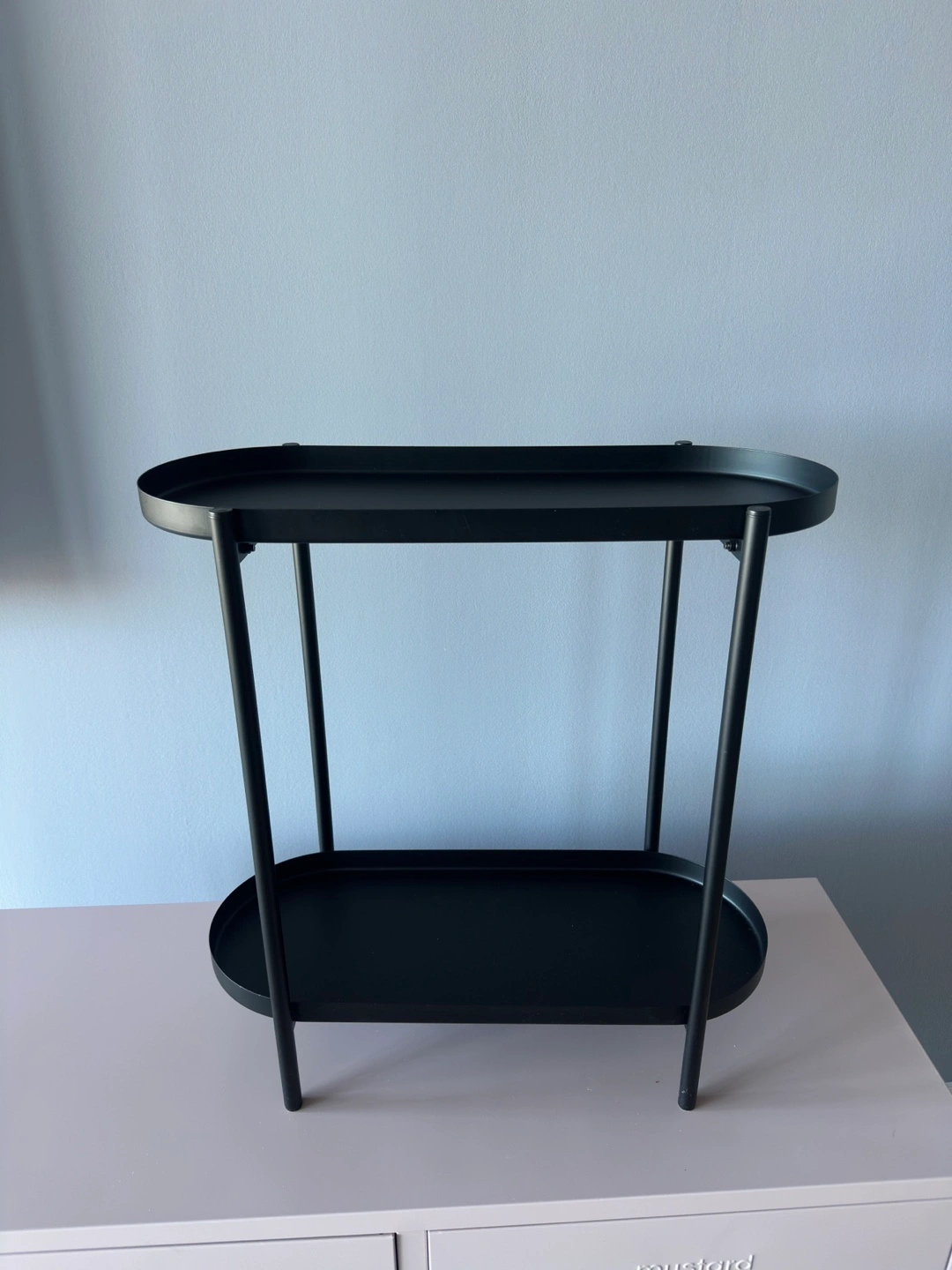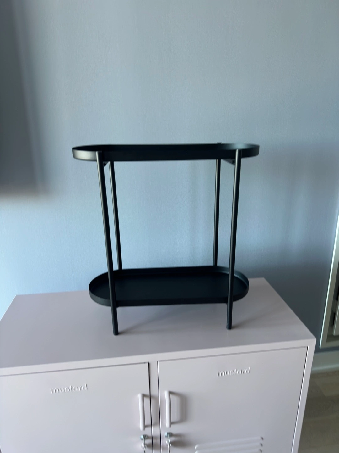 Small black metal side table. Two oval shelves. Minimalist design. Excellent condition. Perfect for small spaces. Please message me if you have any questions Pick up Queen and Dufferin ideally ๐