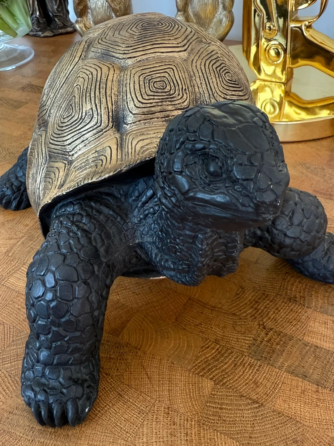 Statue Benny's Elephant Turtle Black Gold Ceramic Size 13x11 inch Very good condition Location Islington